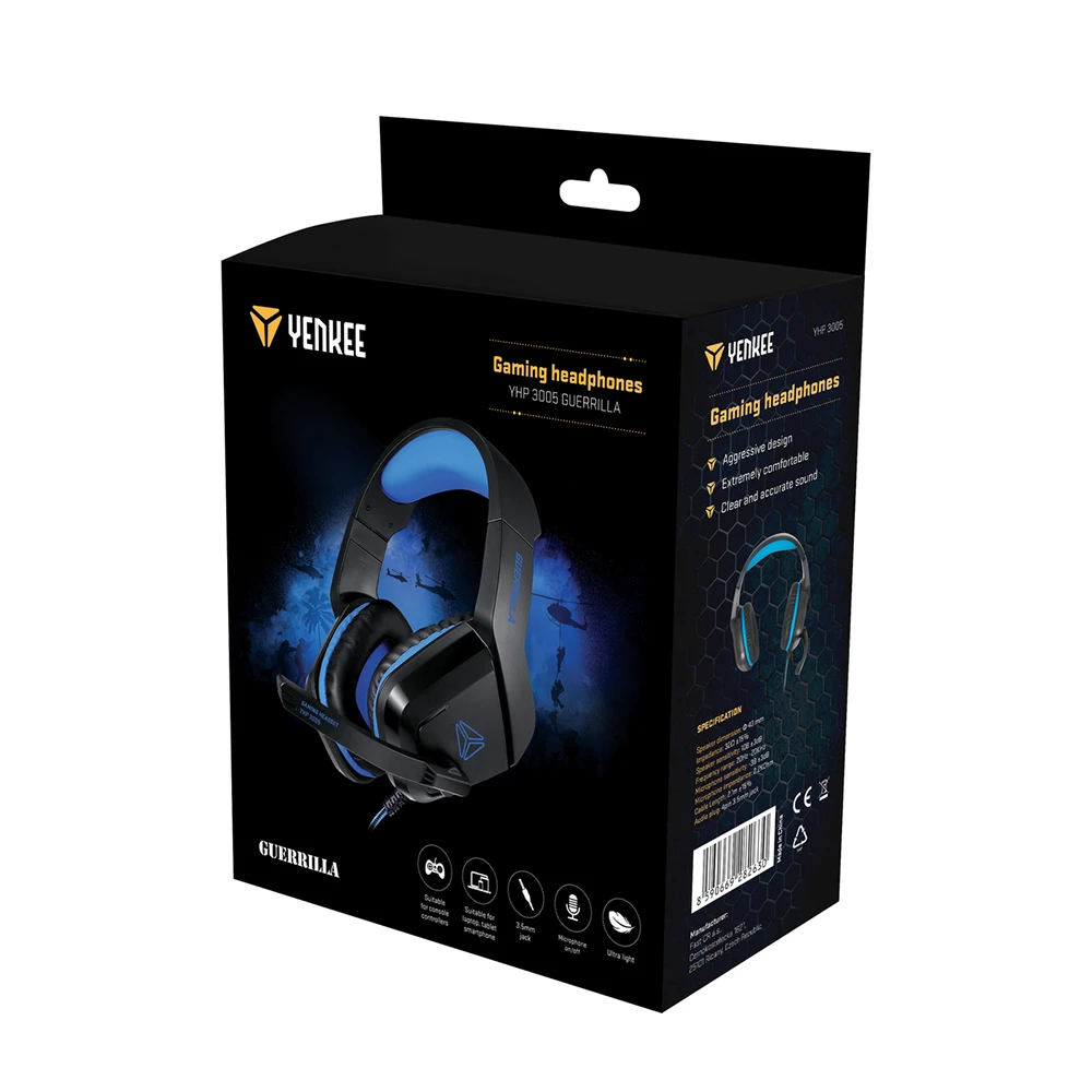 Слушалки Yenkee 3005 Guerrilla, геймърски, 3.5 mm жак, 108 dB, 2.1 m кабел, черно-сини