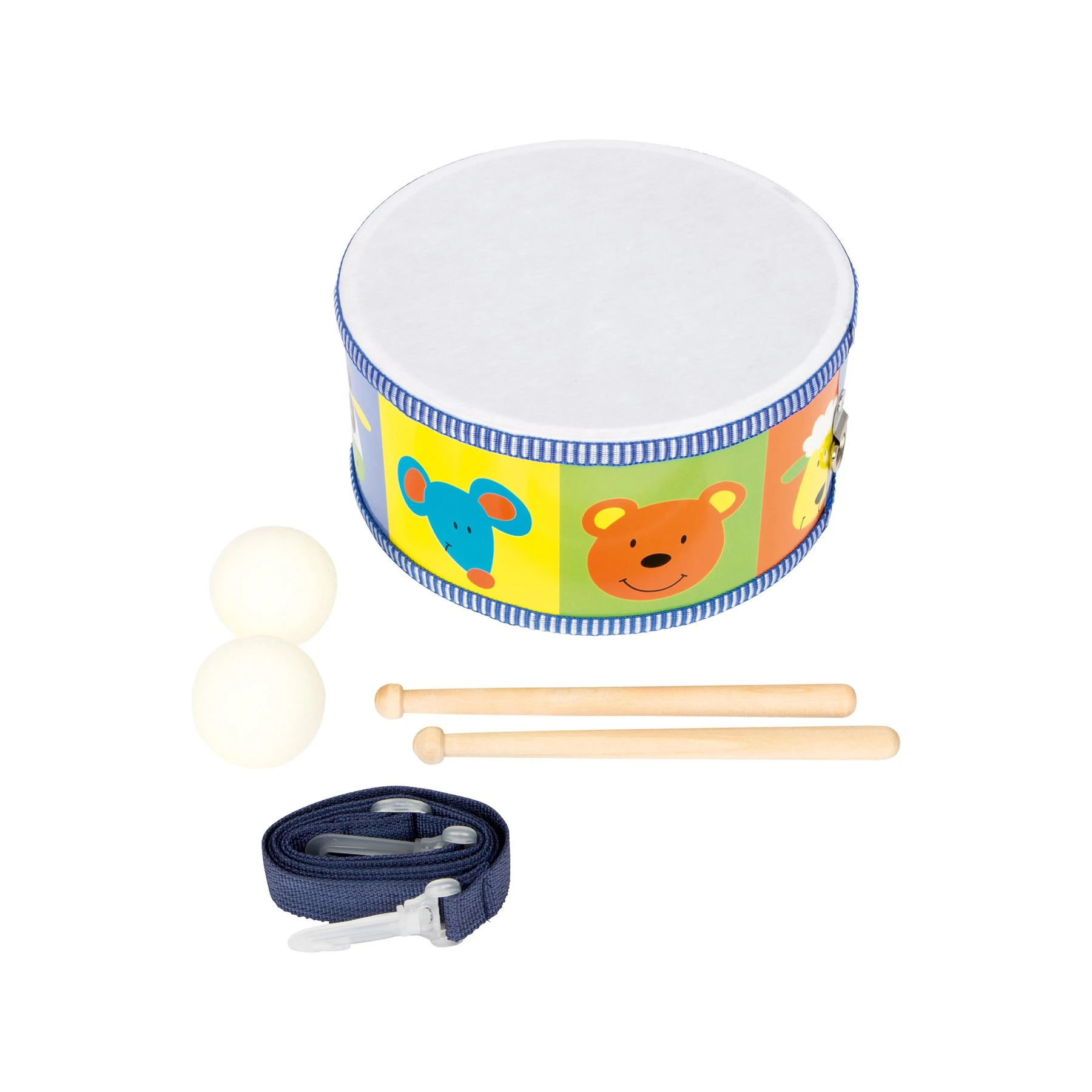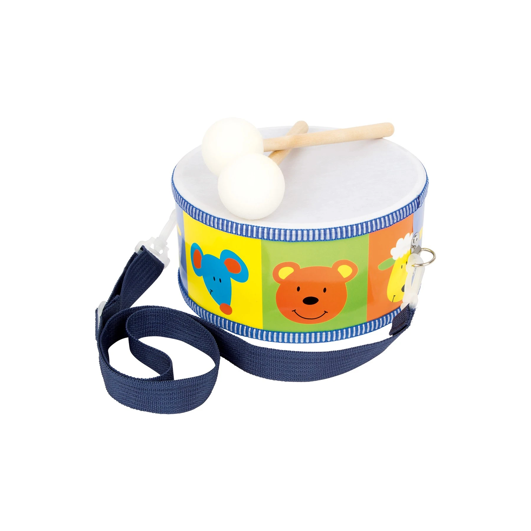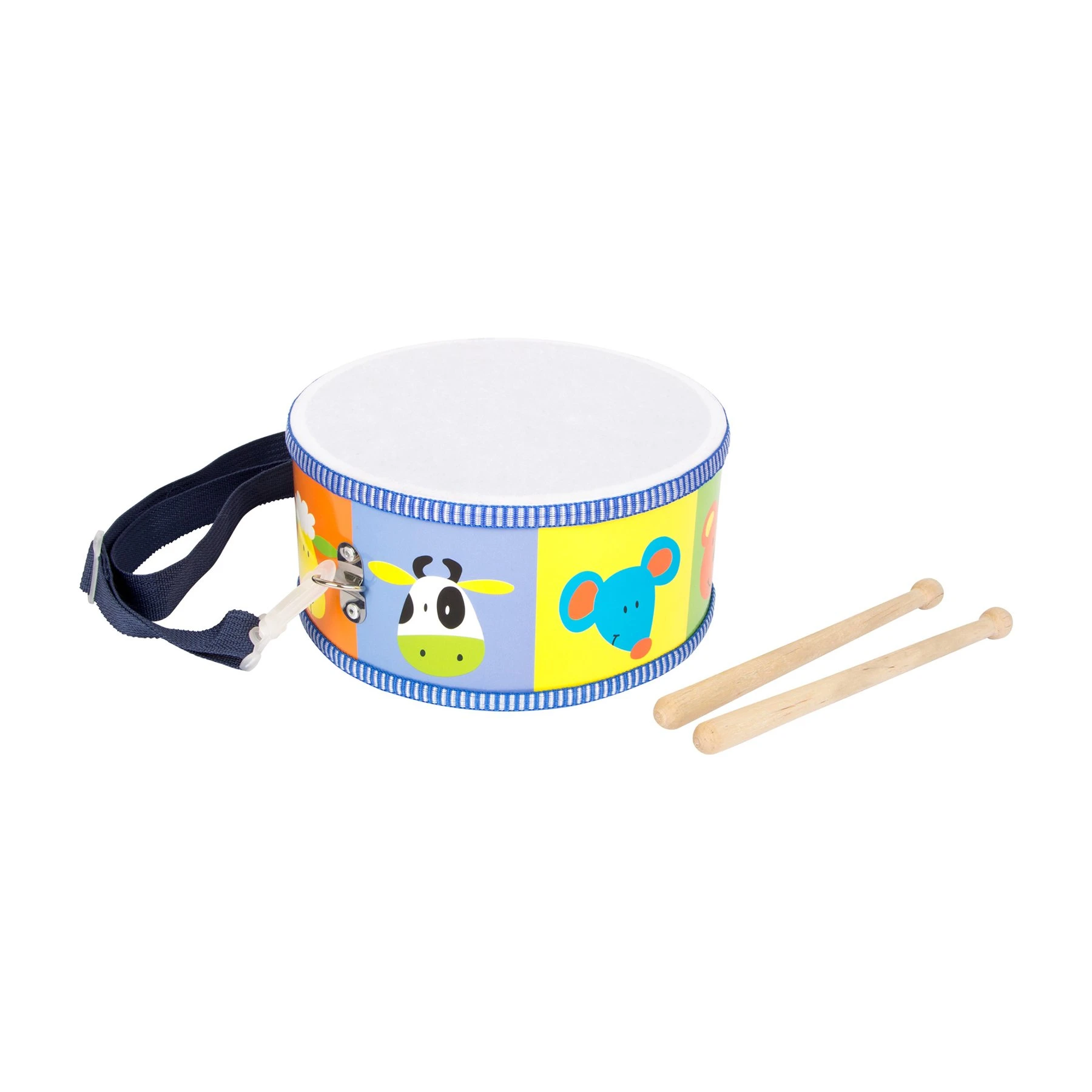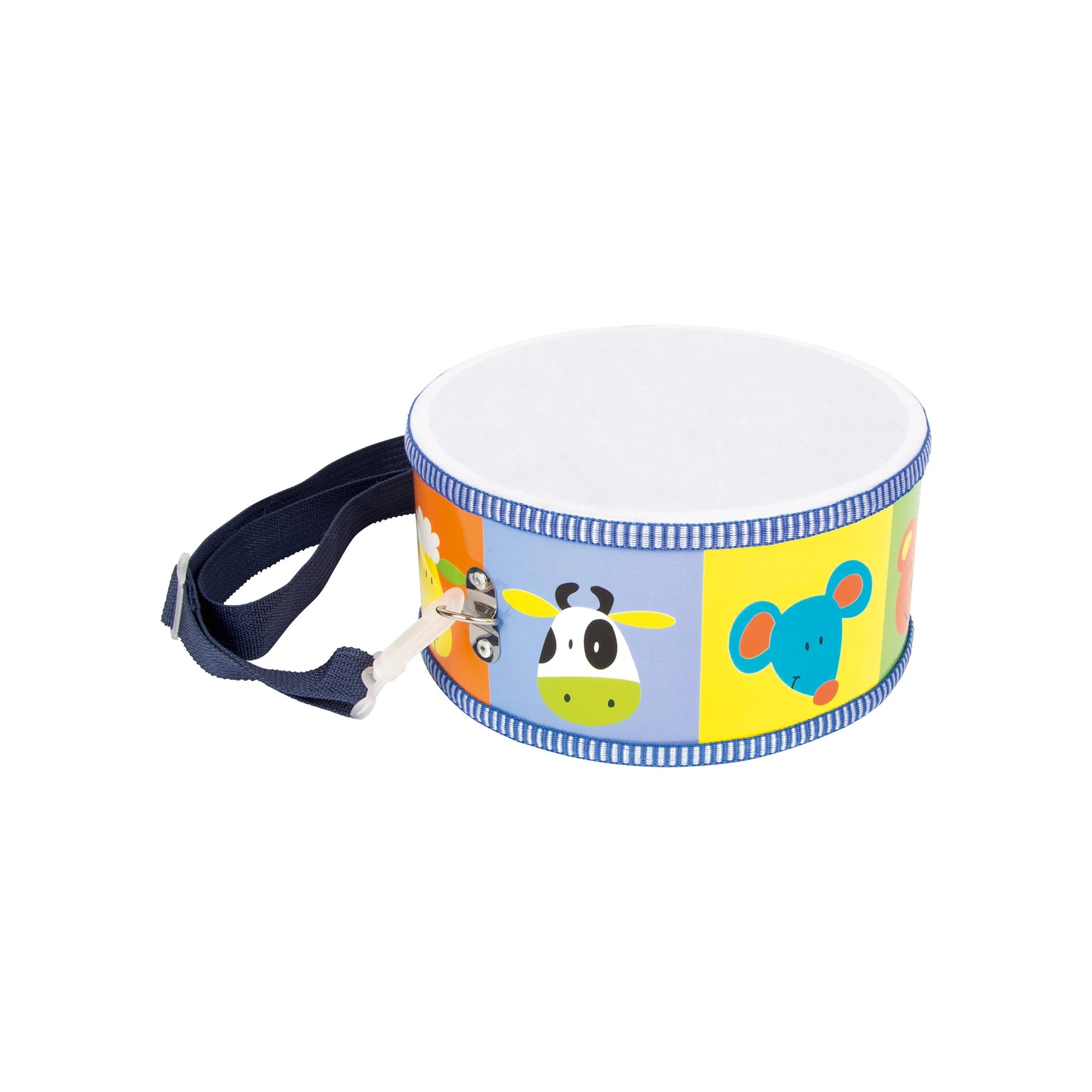 Шареният барабан със сладки животински глави кани на весели звуци в детската стая!