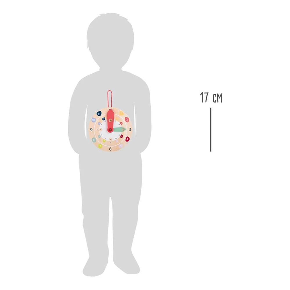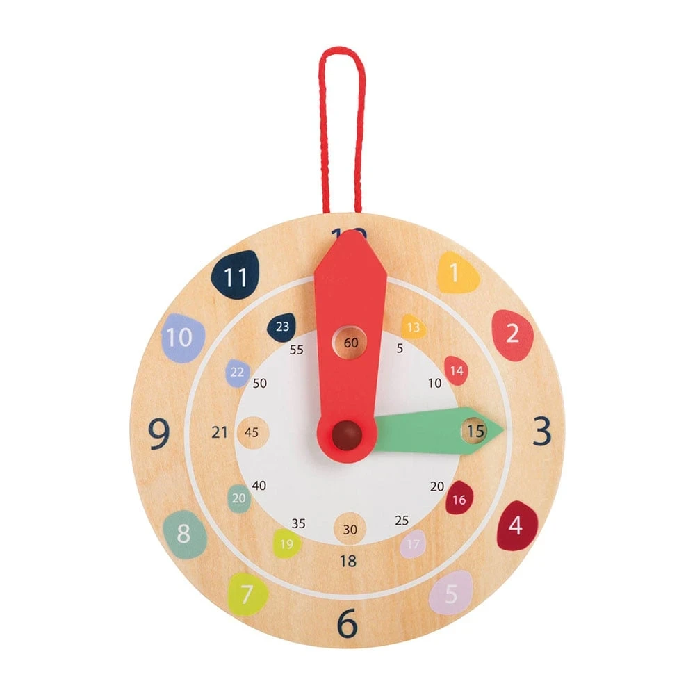 Тик так – времето лети, но с този образователен стенен часовник, изработен от FSC® 100% сертифицирано дърво, можете да го спрете за кратко. Часовникът по забавен начин насърчава децата да научат часа. Независимо дали са минали пет минути или два часа, стрелките на часовника могат да бъдат преместени. С възможност за окачване на стена. О, вече е 8:00? Време е за детска градина!