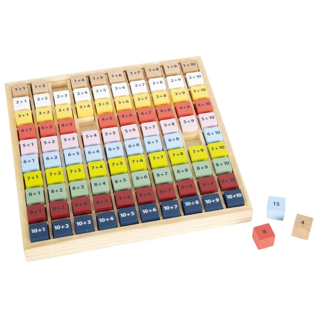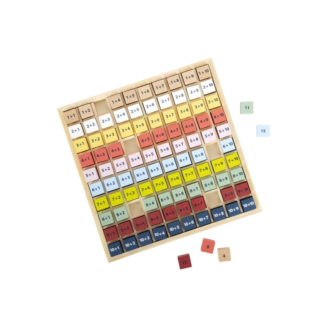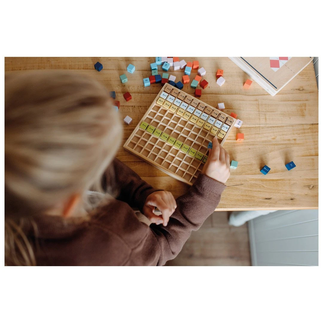 Дървена дъска с различни цветни кубчета за подреждане и сортиране.