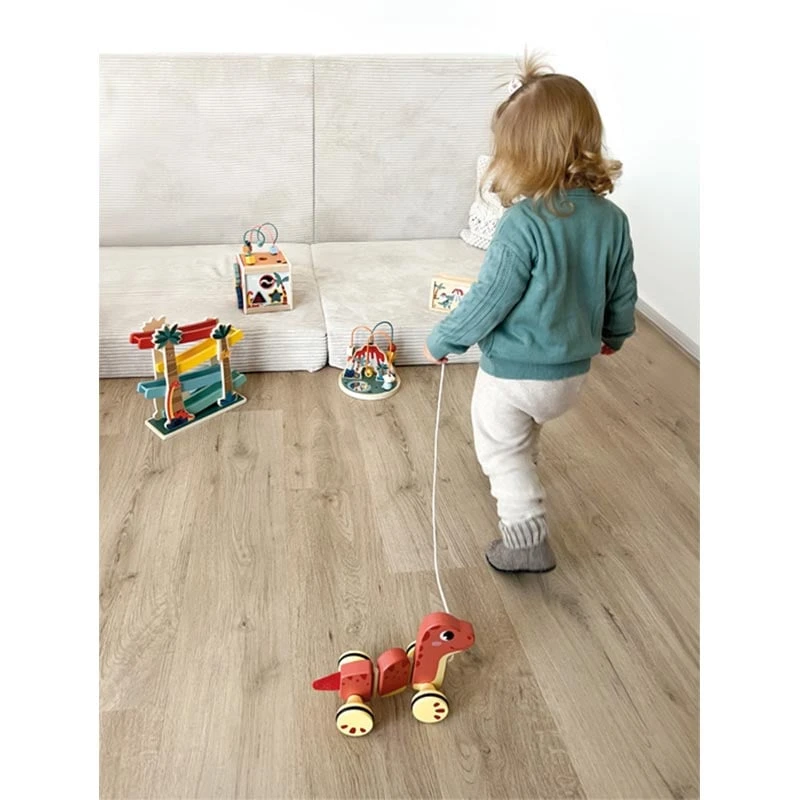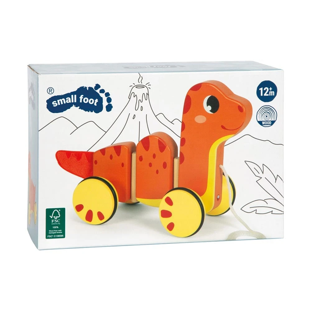 Дървеният динозавър за дърпане от Small Foot е чудесен спътник за малките откриватели, които правят първите си стъпки в света на движението и координацията. Изработен от висококачествена дървесина и боядисан с безвредни бои, този симпатичен динозавър ще се превърне в любим приятел на всяко дете.
