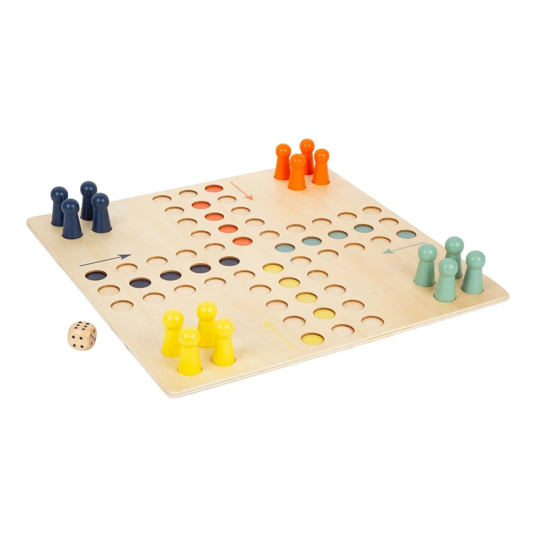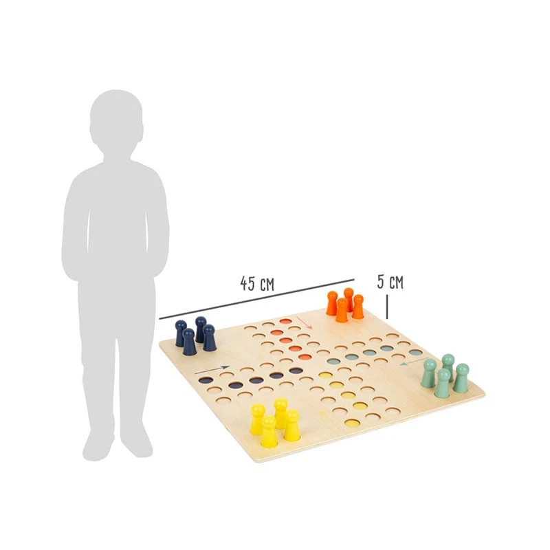 В тази класическа дървена игра целта е да сте първият, който ще вкара вашите игрални фигури в "малката къща".