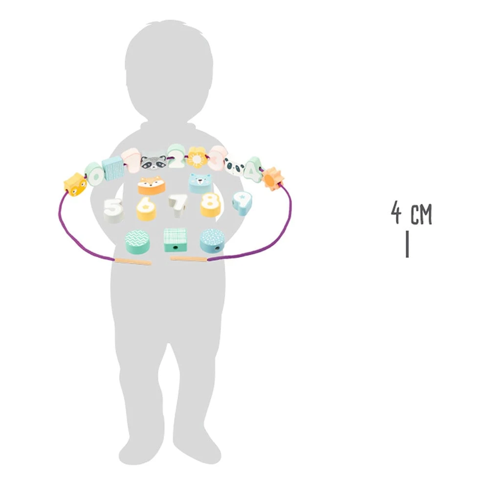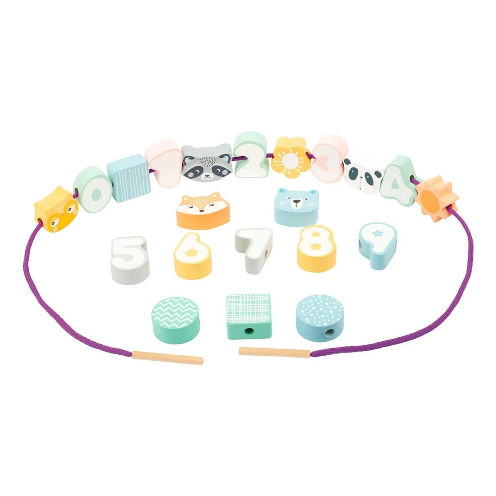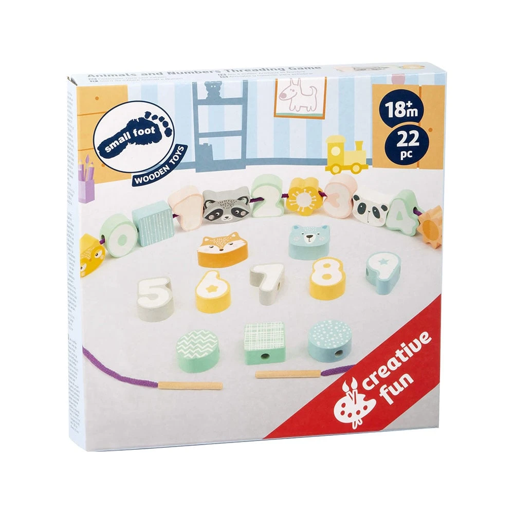Small Foot Игра за нанизване Животни и числа, в пастелни цветове, 22 части