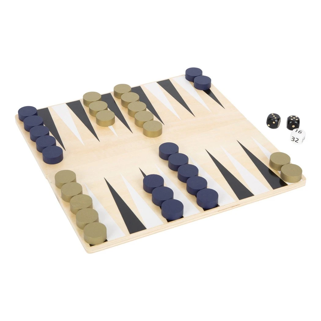 Двете класически игри, изработени от дърво, се предлагат с изискани златни акценти, комбинирани със семпло черно-бяло, модерно среднощно синьо и много естествено дърво.