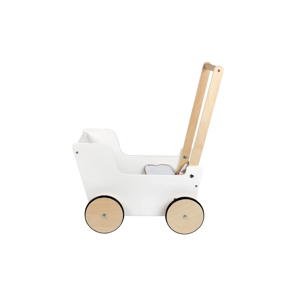 Количката за кукли в скандинавски стил не само помага на прохождащите деца при първите им стъпки, но също така предлага удобен и стилен дом за кукли и плюшени животни с размер до 46 cm.