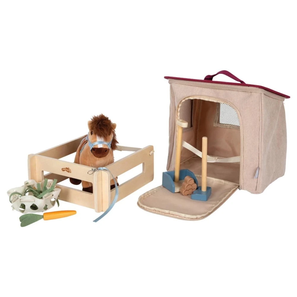 Small Foot Комплект конче с конюшня и аксесоари, в чанта