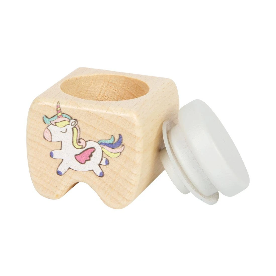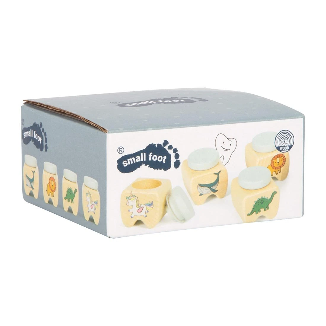 Когато първото клатещо се зъбче падне, започва специална глава от детството – и точно за това са предназначени тези дървени кутийки за млечни зъбки. Всяка кутийка има детски мотив: независимо дали е смел лъв, нежен кит, игрив еднорог или малък динозавър – има любим мотив за всяко дете.
