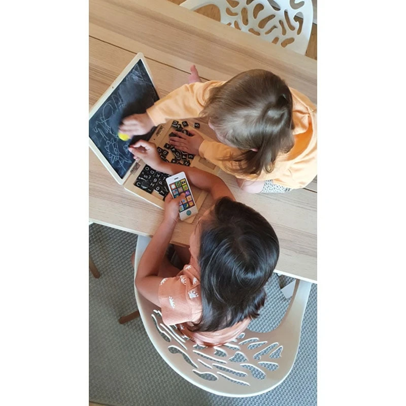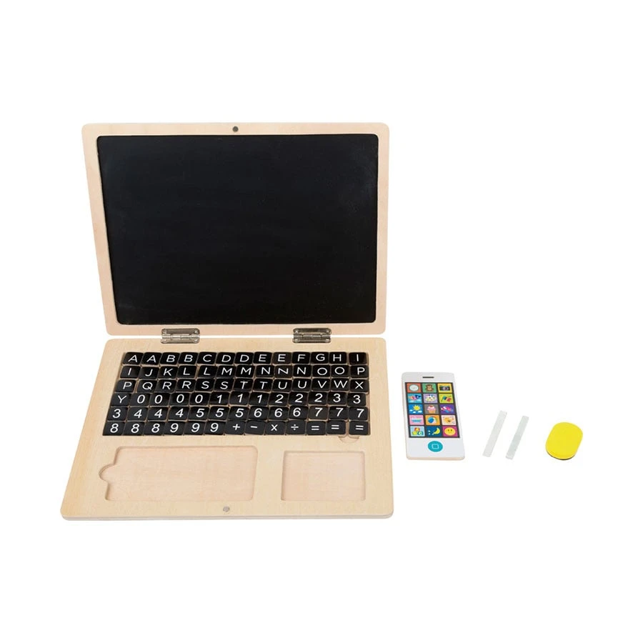 Дървен лаптоп с магнитна дъска, насърчаваща творчеството и социалната компетентност.