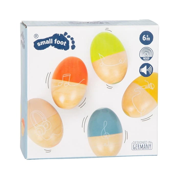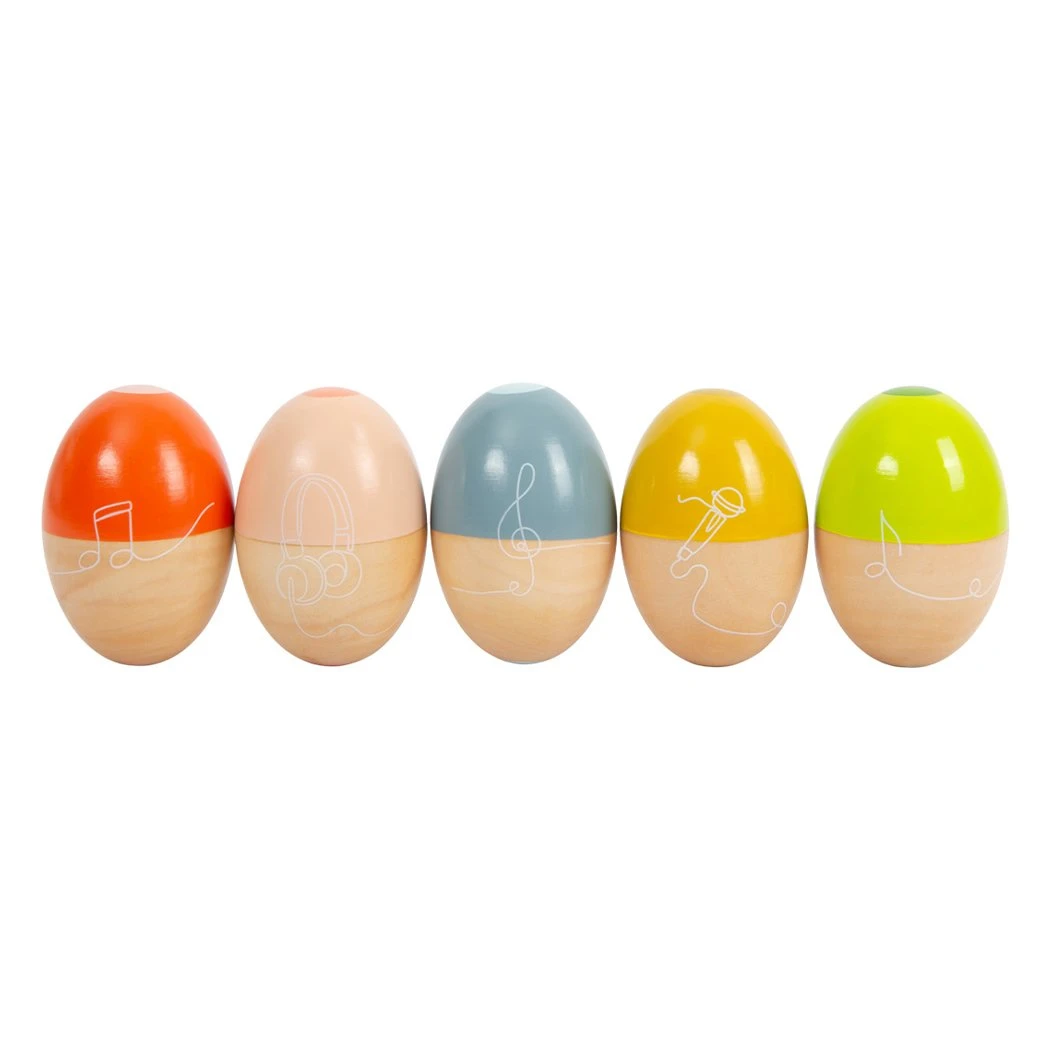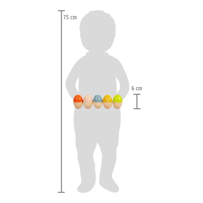 Комплект от 5 дървени музикални яйца с удобна форма, която позволява добър захват дори от най-малките си притежатели. Вашето дете може да се наслади на пет различни звука и пет различни цвята, които ще му помогнат да подобри координацията между ръцете и очите.