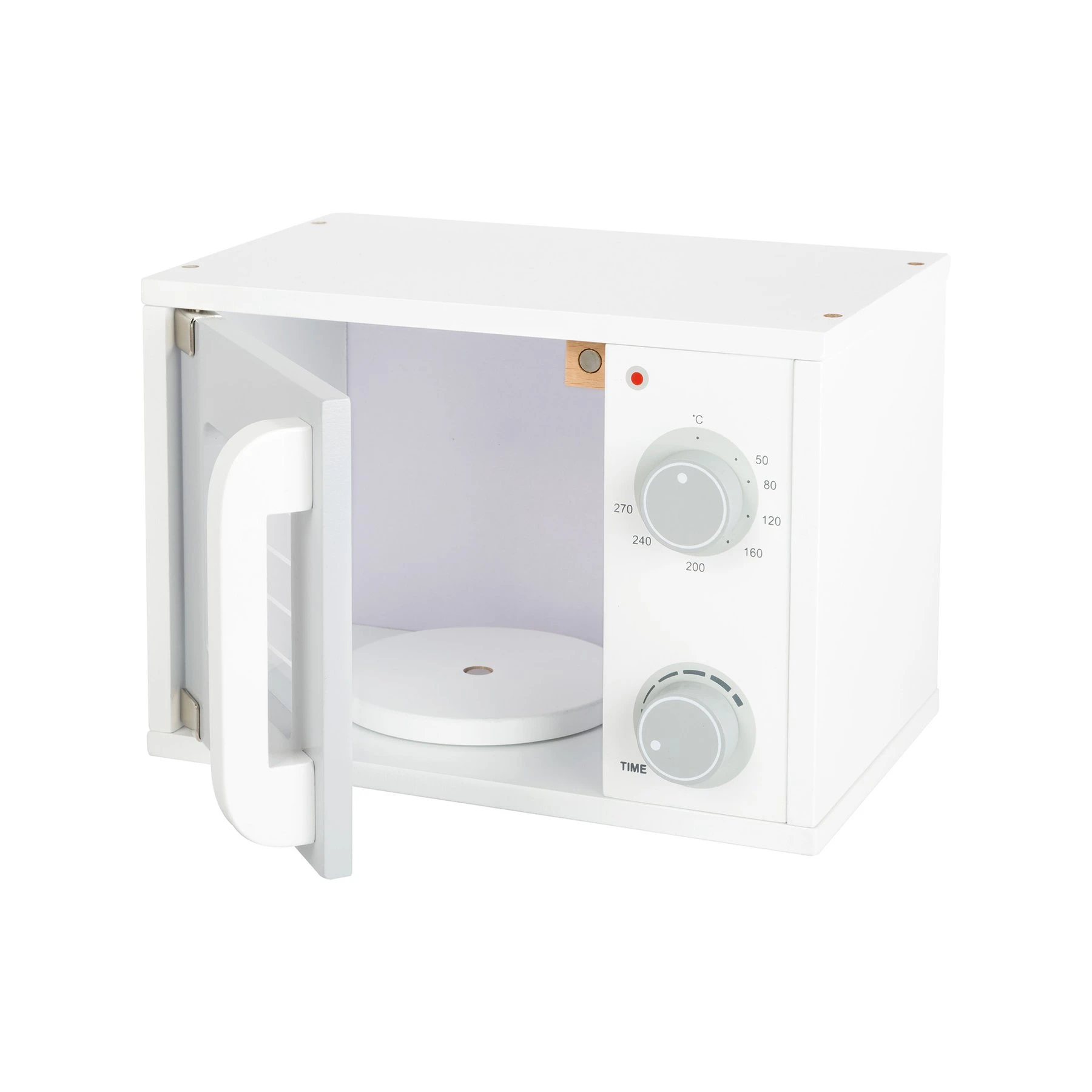 Щрак! Храната е претоплена! Децата вече могат да си играят на домакини, а тази дървена микровълнова идеално ще запълни тяхната кухня.