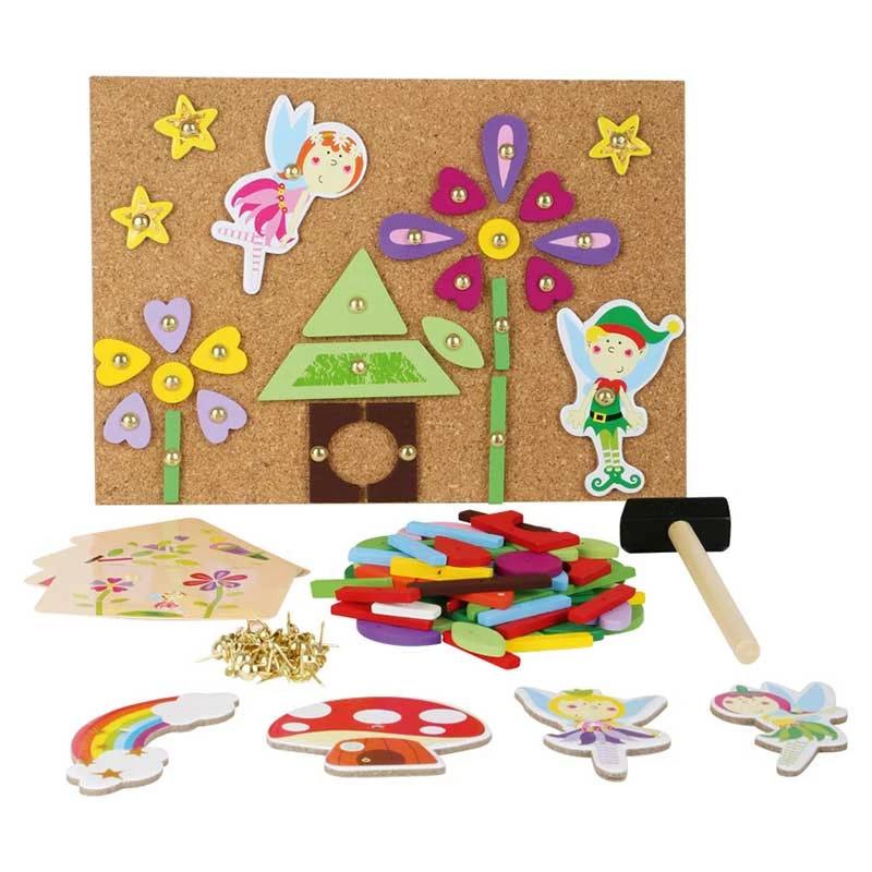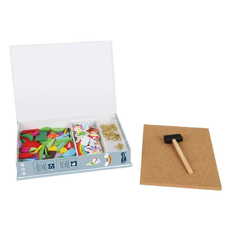 Класическа игра с богат избор от малки дървени плочки и елементи с мотиви от темата за феите. Игра на умения, която насърчава развитието на креативността и фината моторика!
