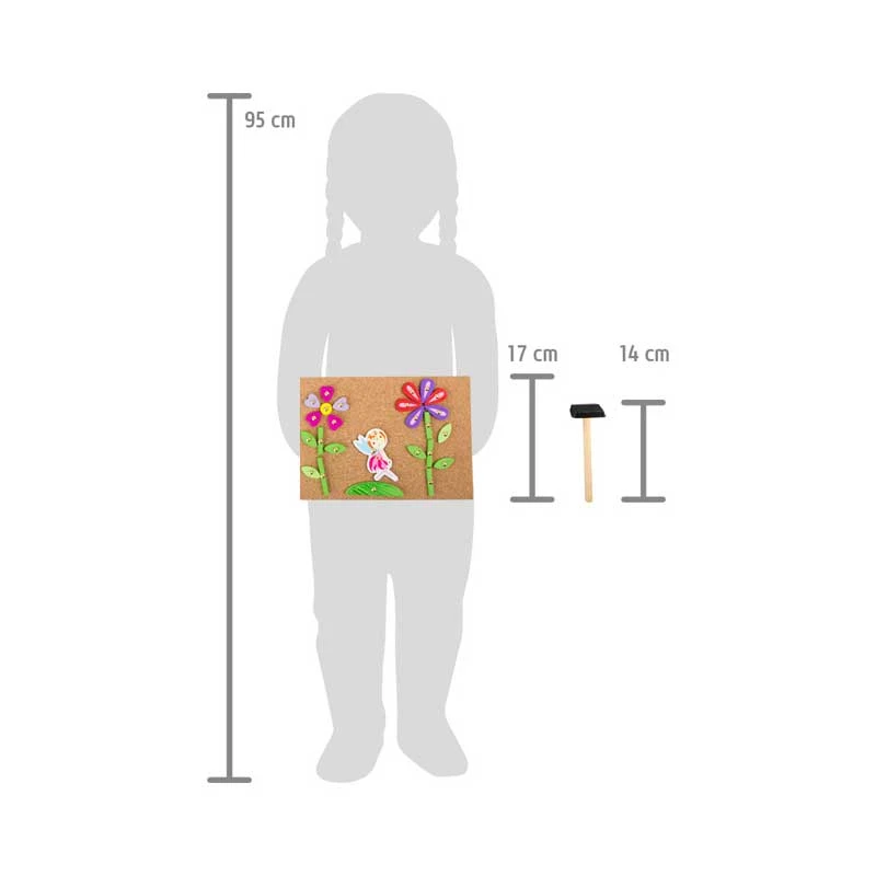 Златистите пирони могат лесно да пробият гъвкавия корк, а четирите карти предлагат идеи на малките творци.