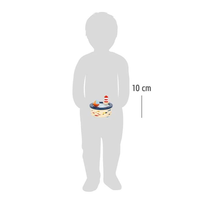 Двете дървени фигурки - платноходка и фар се въртят, докато свири мелодията.