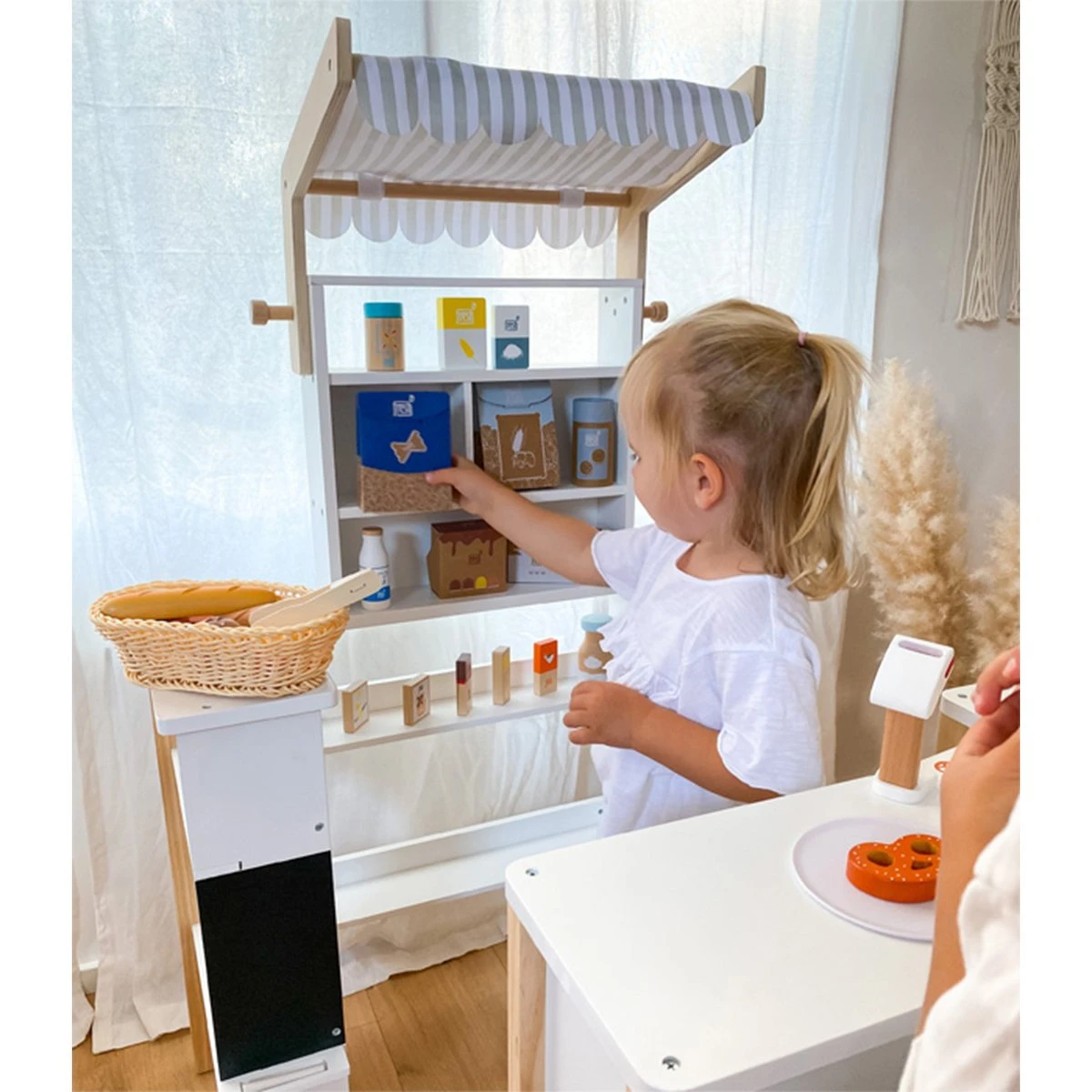 Децата могат първо да „купят“ дървените нудли в магазина за игри и след това да ги използват, за да приготвят въображаемо ястие в кухнята за игри по време на изпълнена с фантазия ролева игра.