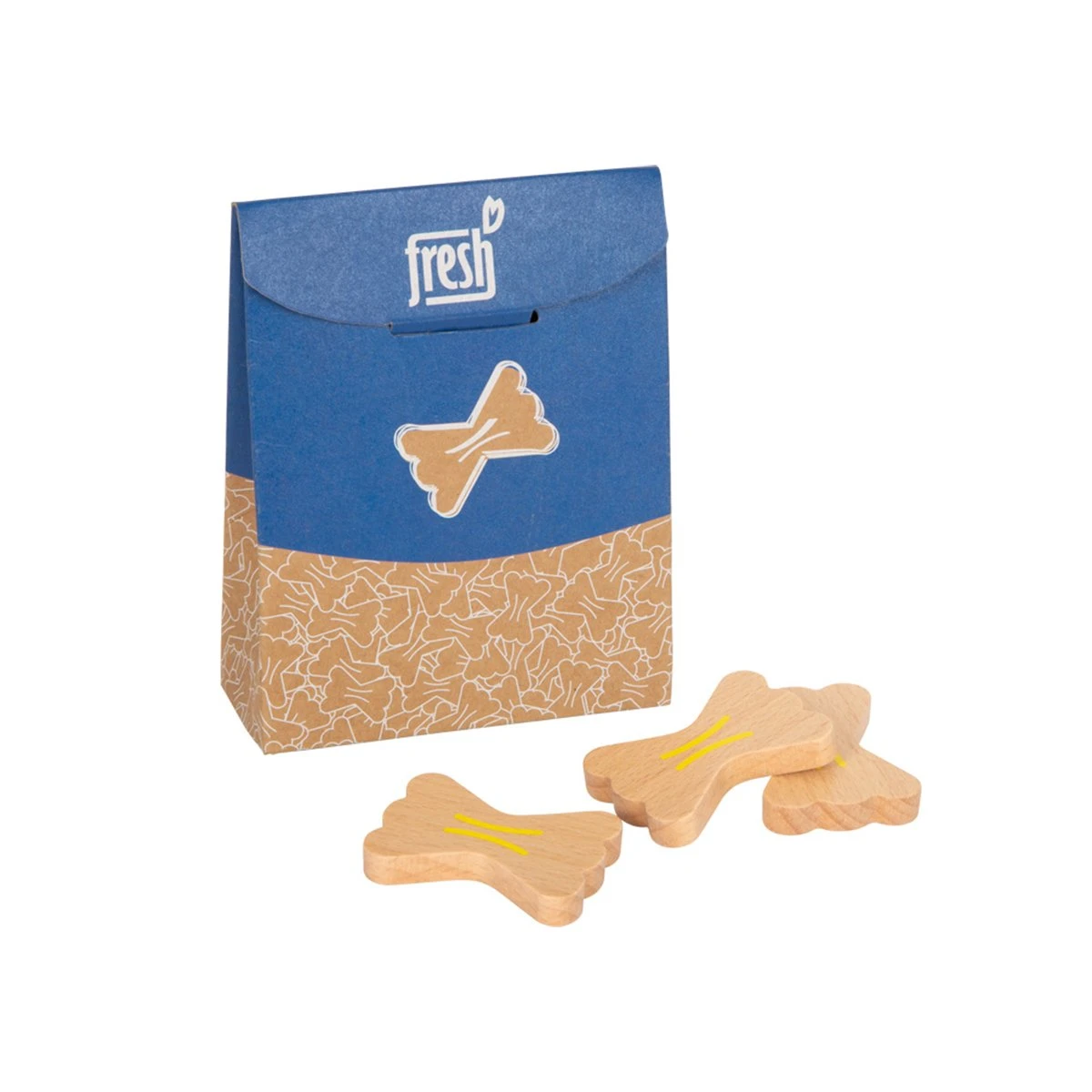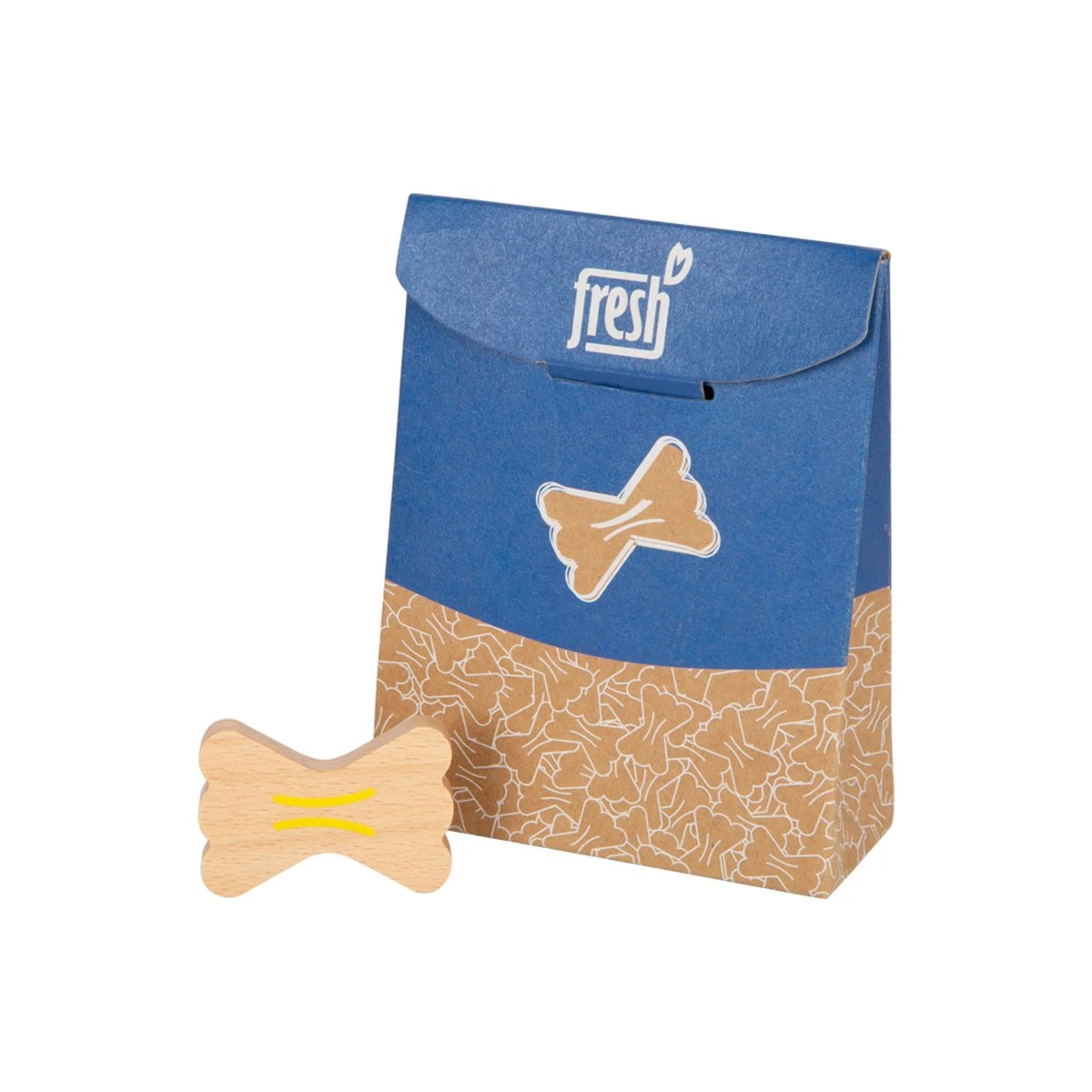 Дървената паста ще се впише чудесно във всеки магазин или кухня за игри. Тези 12 фарфале нудли са изработени от масивно дърво, имат естествен външен вид и екологично чиста сгъваема кутия от картон. Практично и образователно: на гърба на кутията има инструкции в снимки, чрез които малките деца могат да научат как се приготвят в действителност.