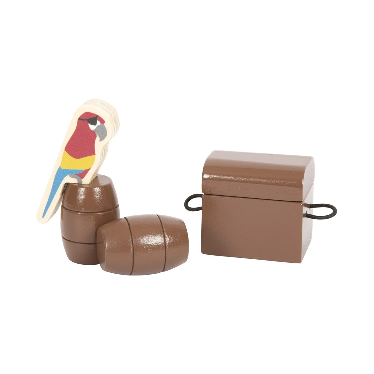 В допълнение към корабa с двамата капитани, комплектът включва и лодка, две огъващи се кукли, акула, папагал, сандък със съкровище, оръдие, две бъчви, дъска и разбира се готино пиратско знаме.