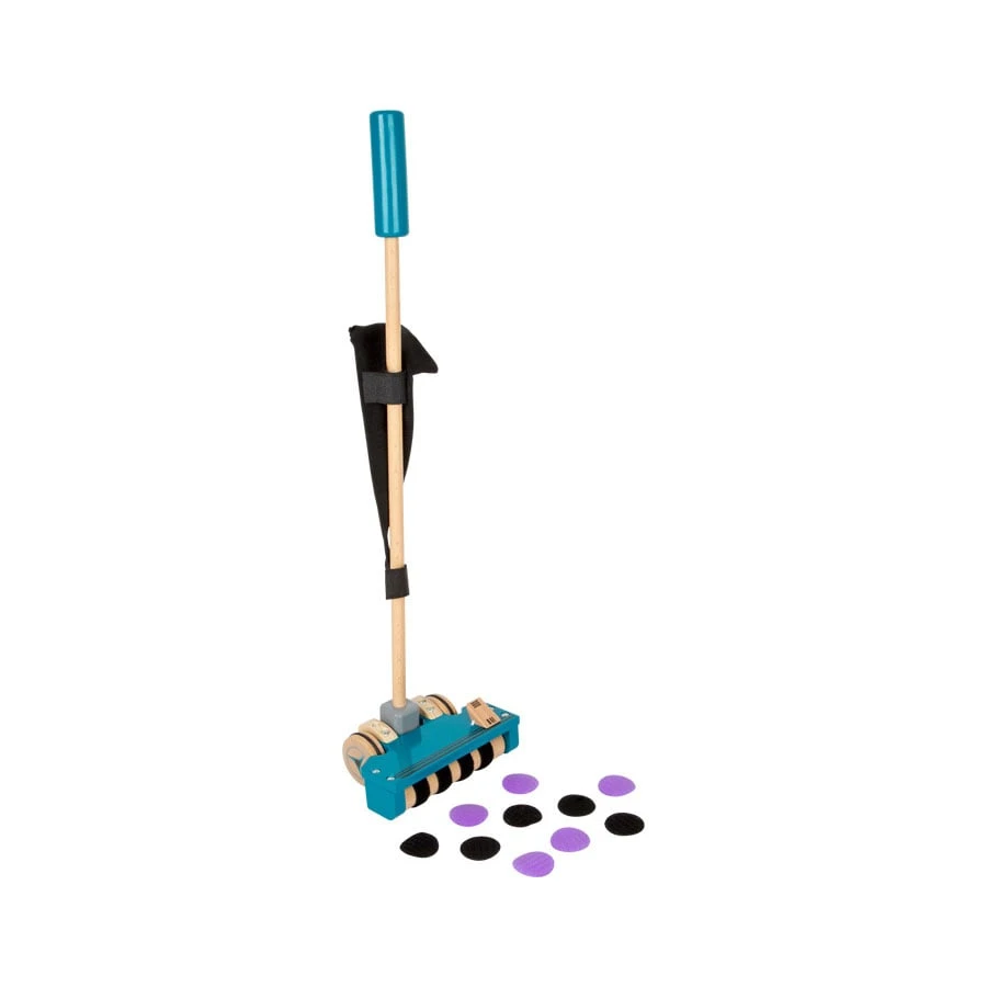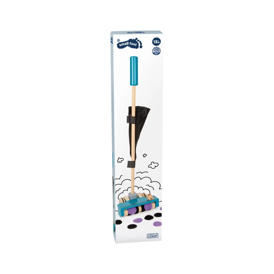 Тази многофункционална дървена прахосмукачка е играчка за бутане и ролева играчка едновременно. Малките деца могат да я ползват като помощно средство за ходене, а по-големите - в активна ролева игра.