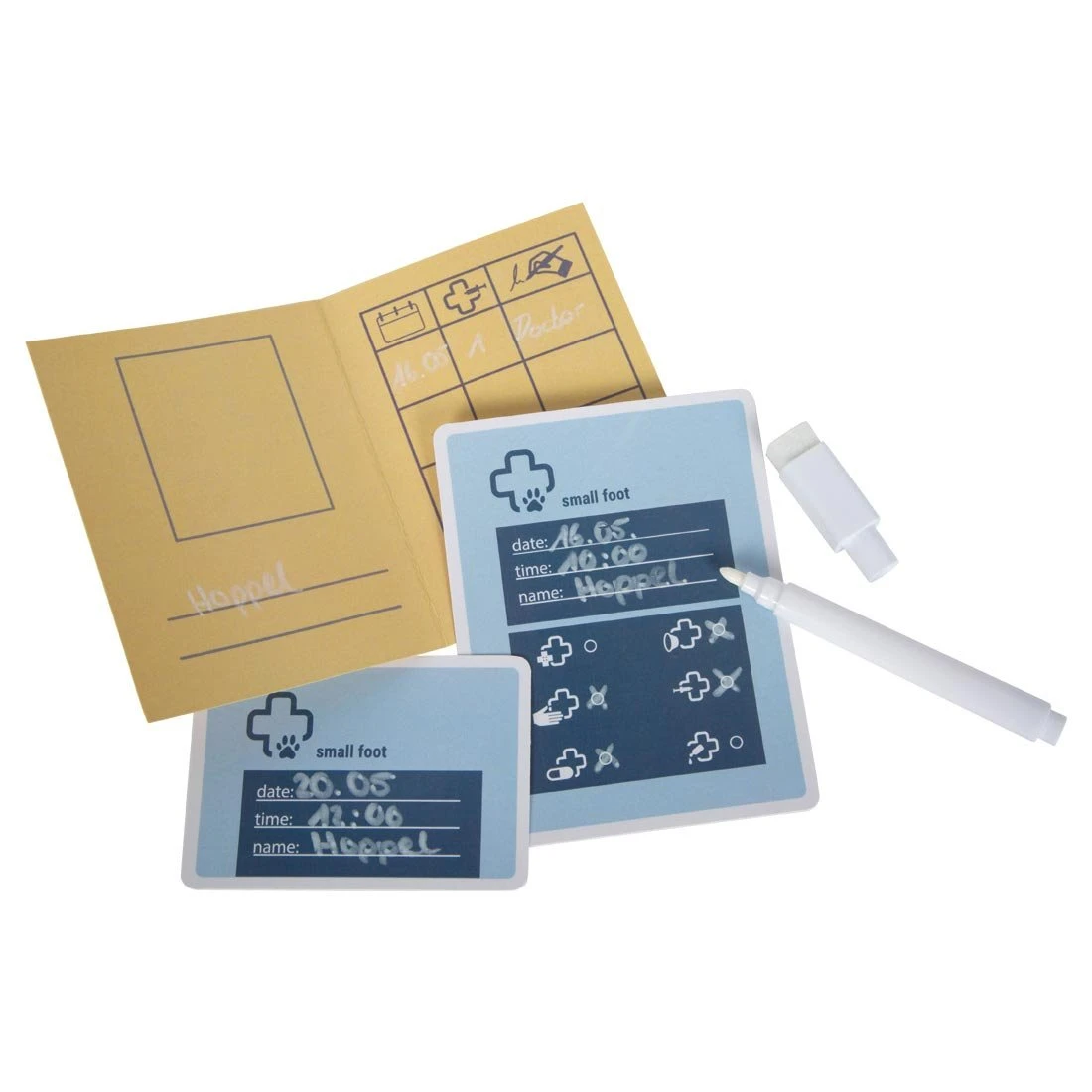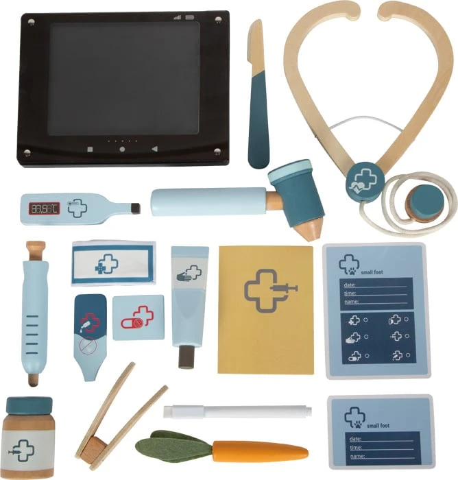 Включеният маркер може да се използва за писане върху карти за преглед и пациентски карти, което също подпомага езиковото развитие и разбирането на здравето при животните. Реалистичното оборудване насърчава креативни сценарии за игра и по забавен начин развива емпатия, чувство за отговорност и фина моторика.