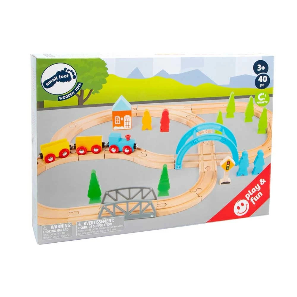 Small Foot Влакче с релси, дървено 45 х 60 х 9.5 cm, 40 части