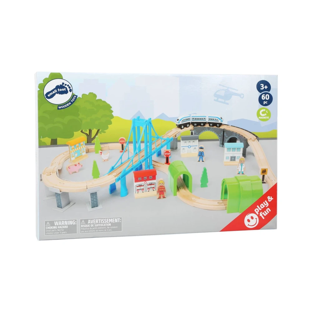 Small Foot Влакче, с релси и мост, дървено, 60 части