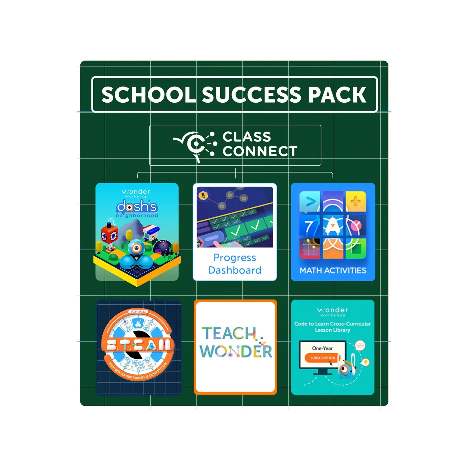School Success включва лиценз за всички учители и ученици в училище с програмата Class Connect, която позволява следене на напредъка на всеки ученик, както и достъп до 3-D средата за програмиране на виртуален Dash - Dash's Neighborhood. Class Connect