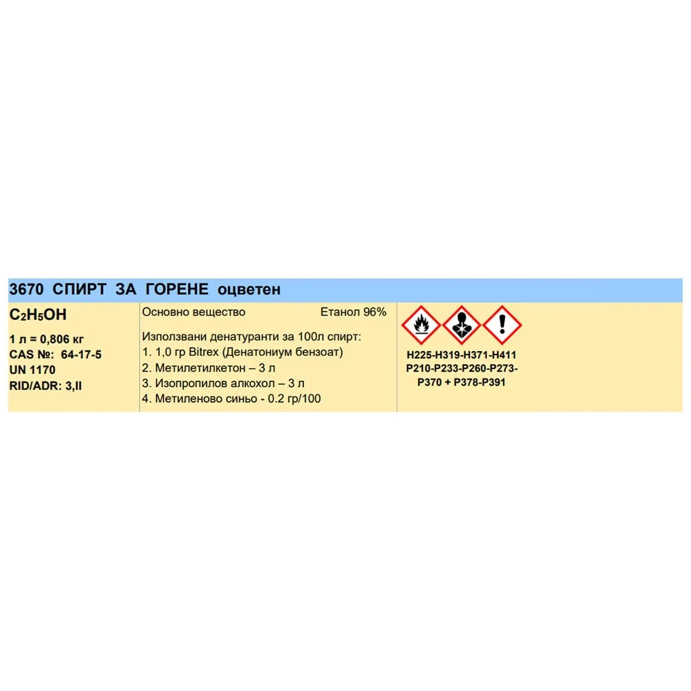 Химичната му формула е C2H5OH.