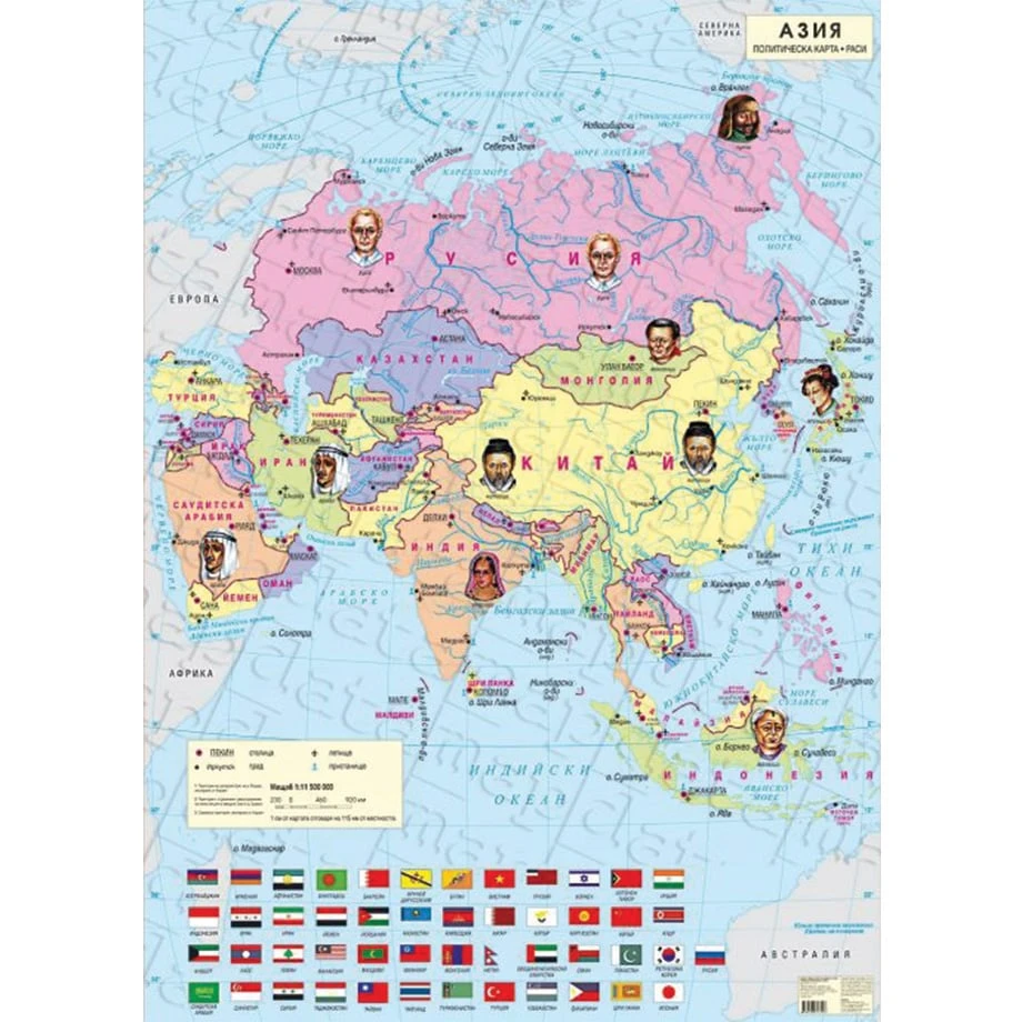 Стенна карта на Азия, политическа, 100 x 140 cm, ламинирана
