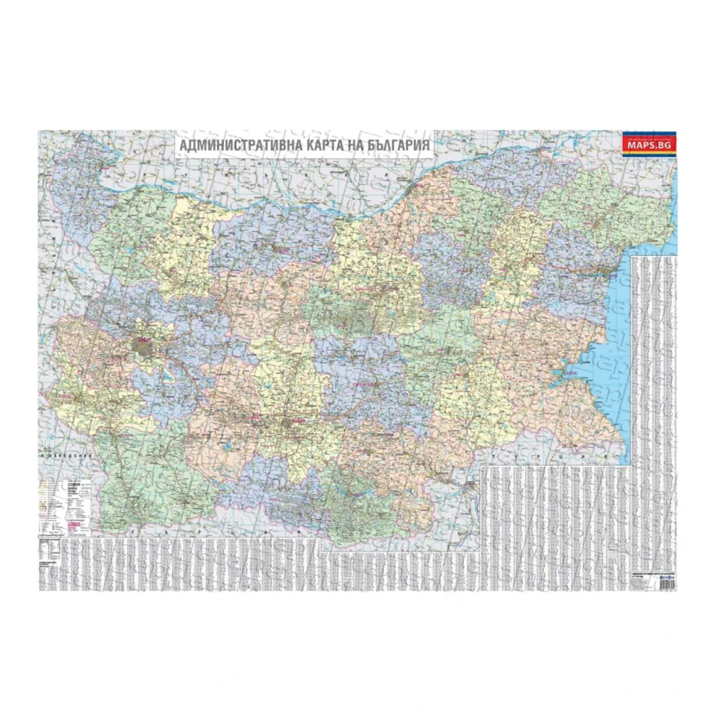 Стенна карта на България, административна, 140 x 100 cm, ламинирана, мащаб 1:380 000