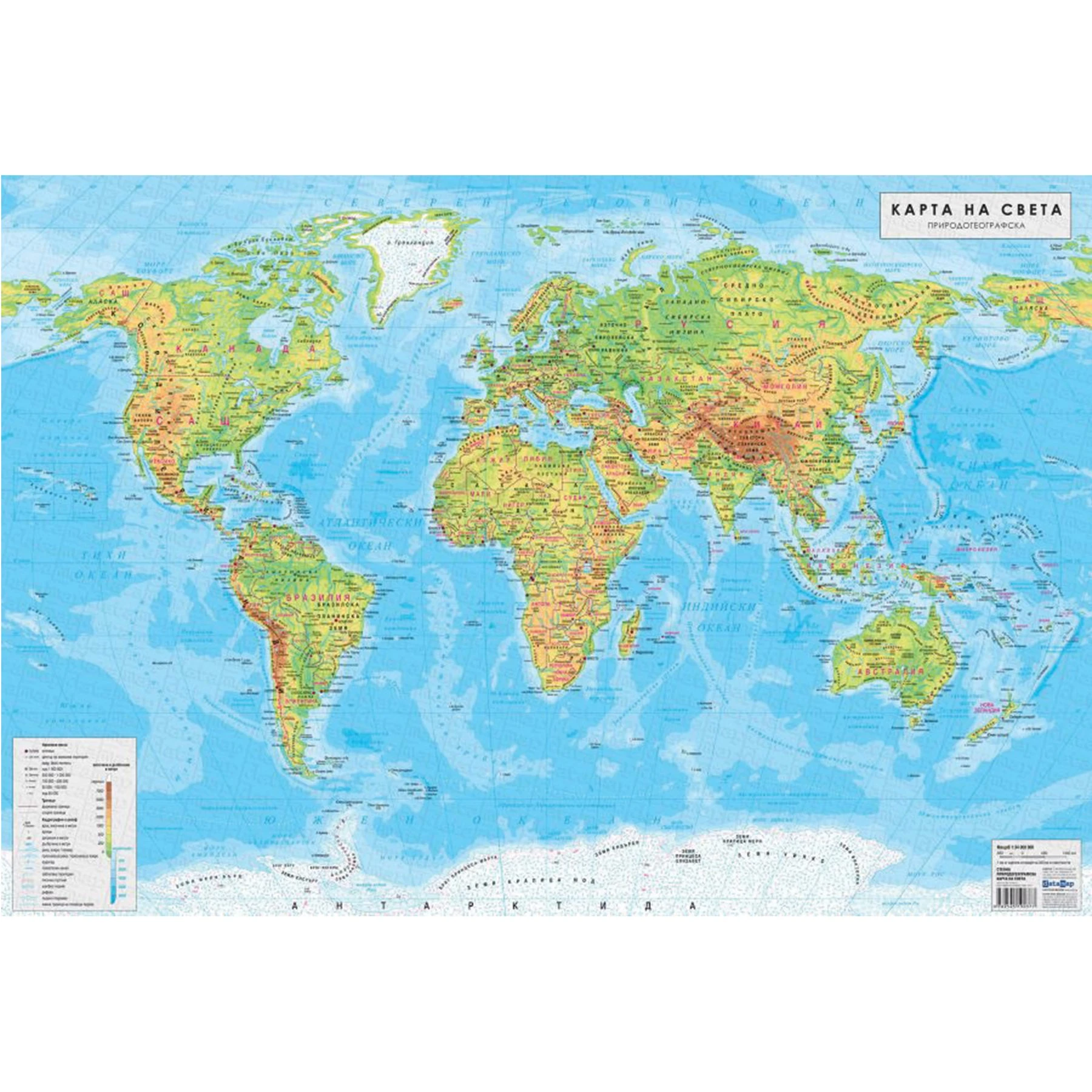 Стенна карта на света, физическа, 100 x 70 cm