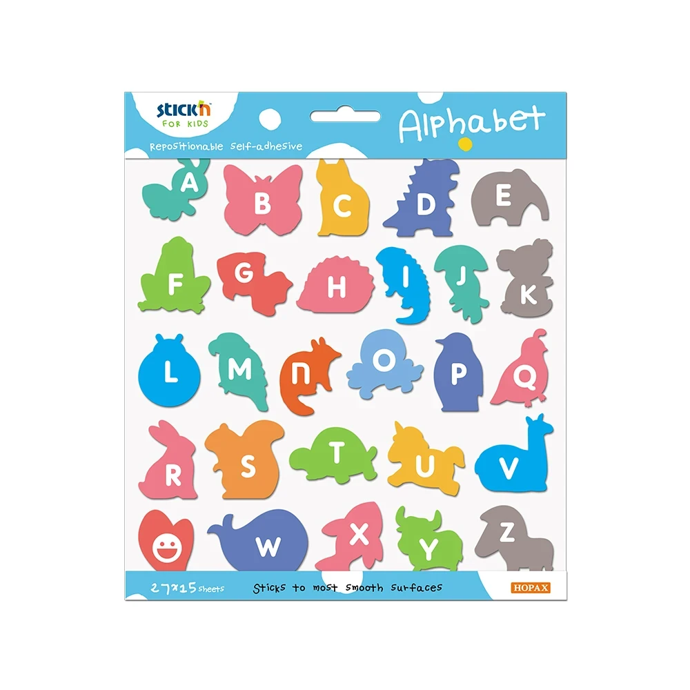 Самозалепващи се хартиени листчета с буквите от латинската азбука.