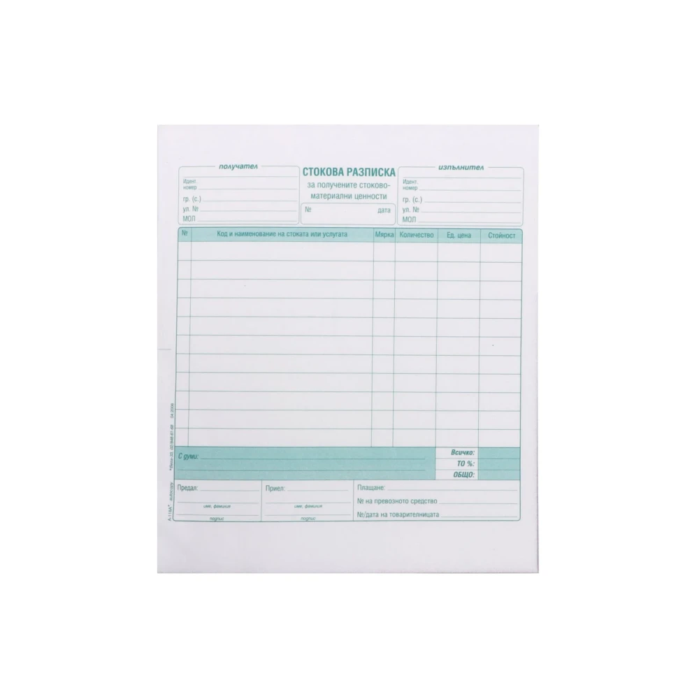 Стокова разписка, средна, химизирана