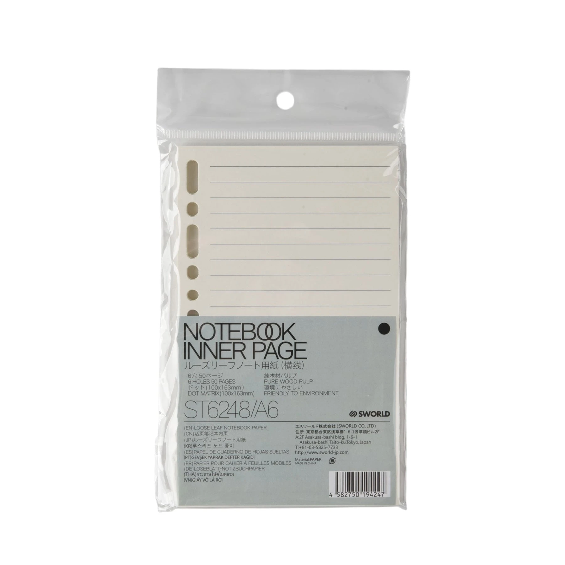 Sworld Листове за органайзер, А6, широки редове, 50 листа