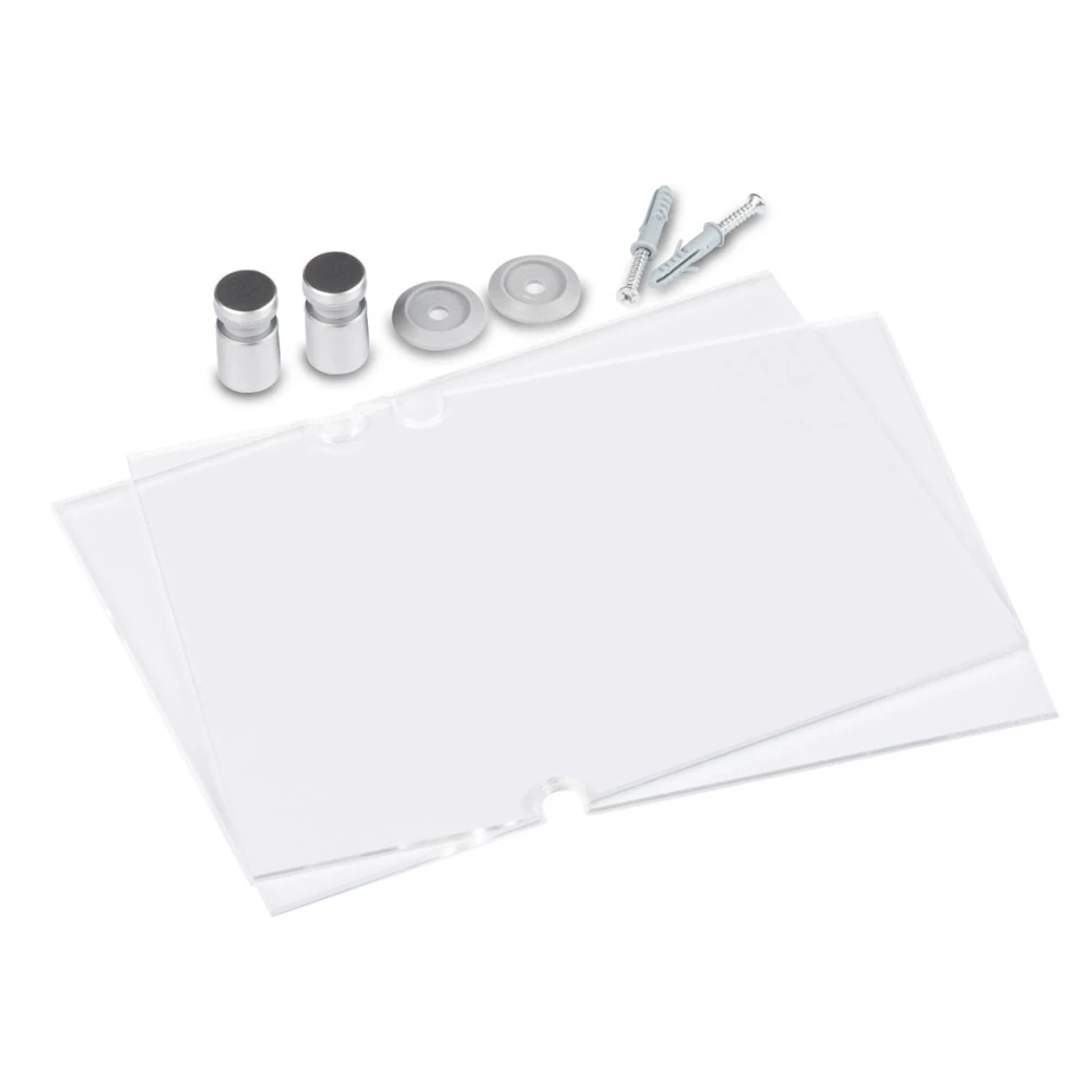 Визитната картичка може да бъде заменена чрез развиване на два дистанционни елемента, държащи два листа от плексиглас.