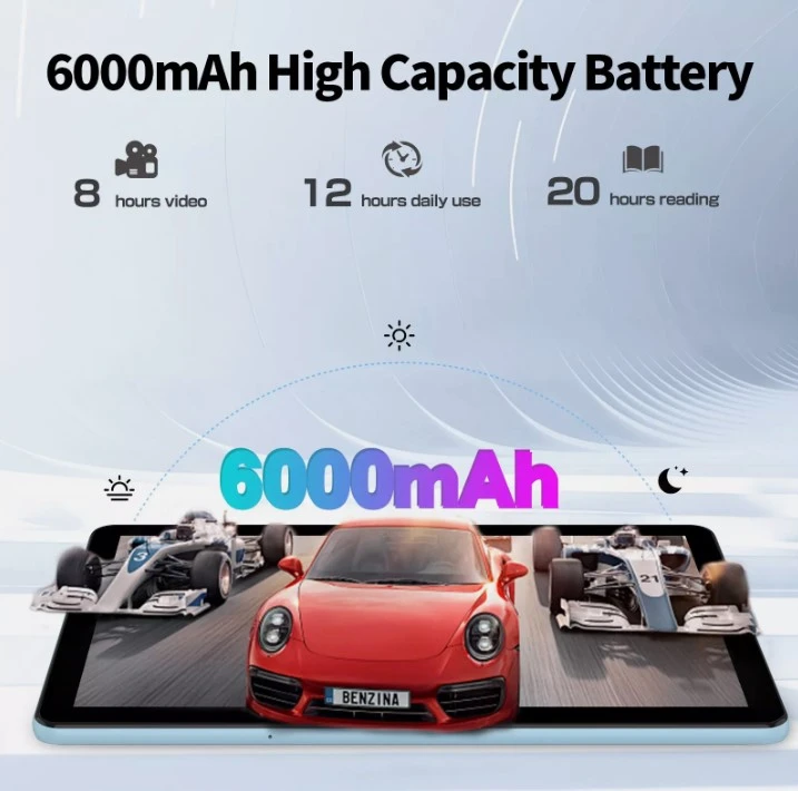 С капацитет на батерията от 6000 mAh, Pritom E10 предлага продължително време за работа, подходящо за сърфиране в интернет, гледане на видеа и други ежедневни задачи.