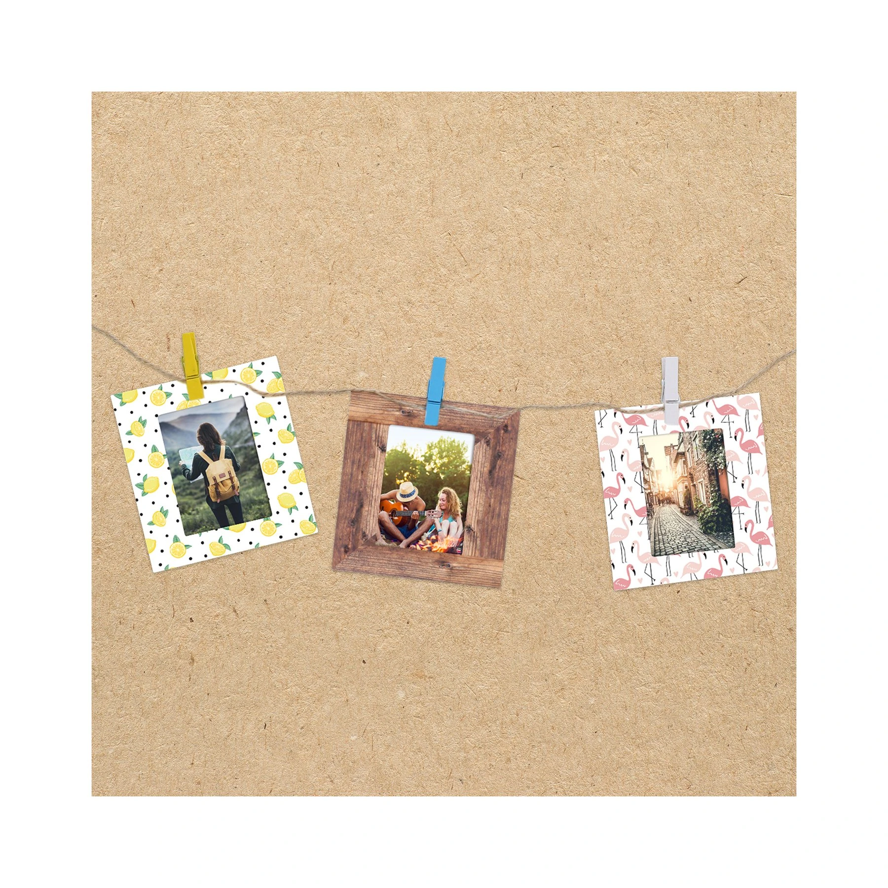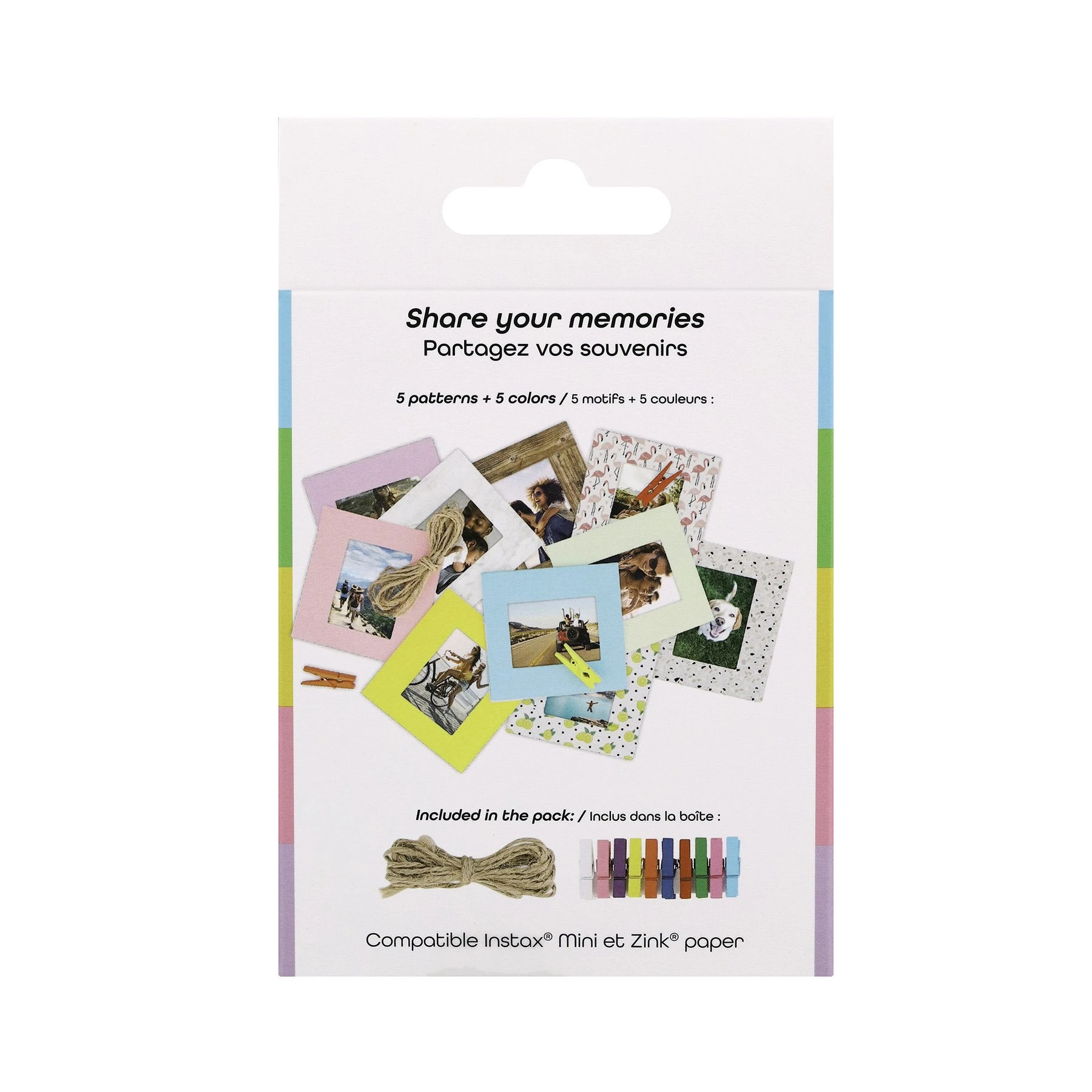 Благодарение на тези 10 хартиени рамки разполагате с 5 цвята и 5 дизайна, чрез които да подредите и декорирате любимите си спомени, запечатани в снимки. След това просто трябва да ги окачите с помощта на включените в опаковката щипки и въженце, за да създадете своя фото шедьовър.
