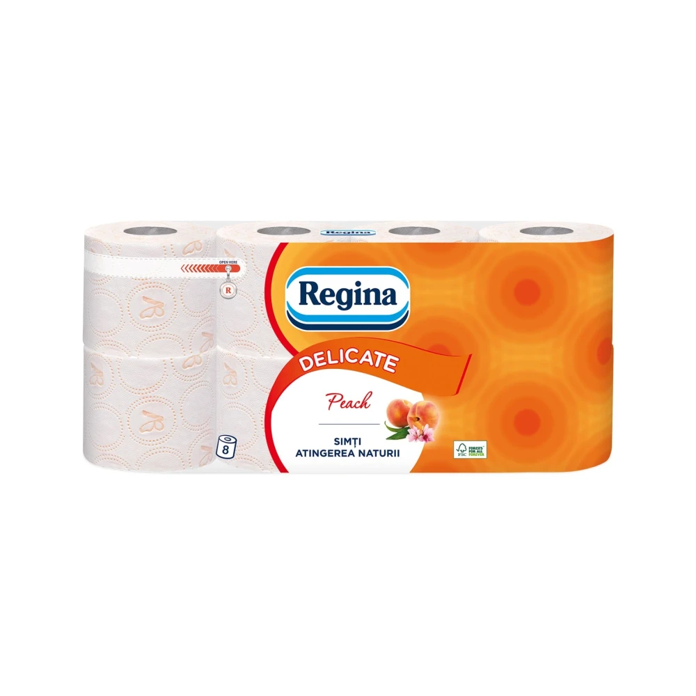 Тоалетна хартия Regina Peach, целулоза, трипластова, 135 къса, 8 броя
