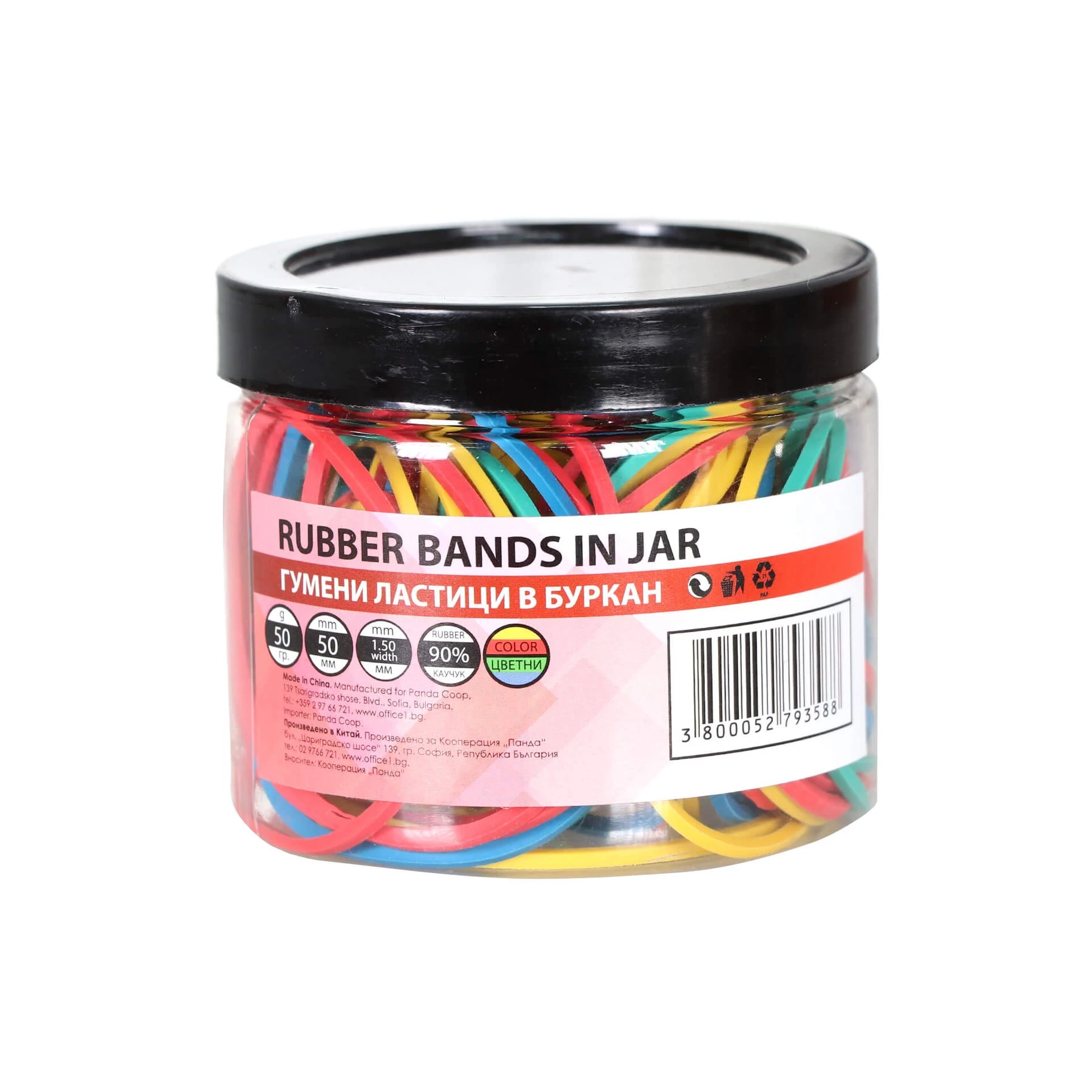 Top Office Ластици, 90% каучук, диаметър 50 mm, цветни, 50 g в буркан