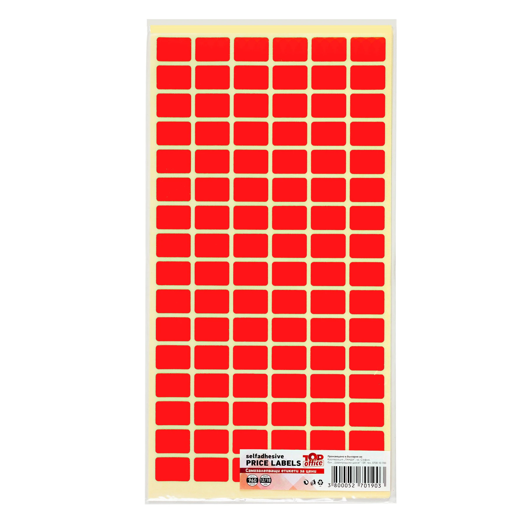 Top Office Самозалепващи се етикети за цени, 12 x 18 mm, червени, 960 броя