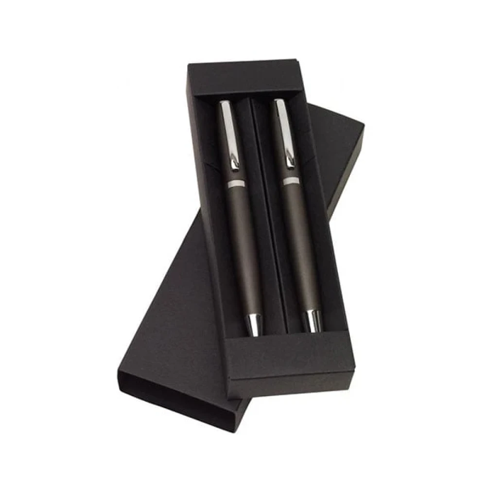 Комплект Alphabet. Състои се от химикалка с въртящ механизъм (с черно мастило) и ролер писалка (черно мастило). Опаковани в подаръчна кутия.