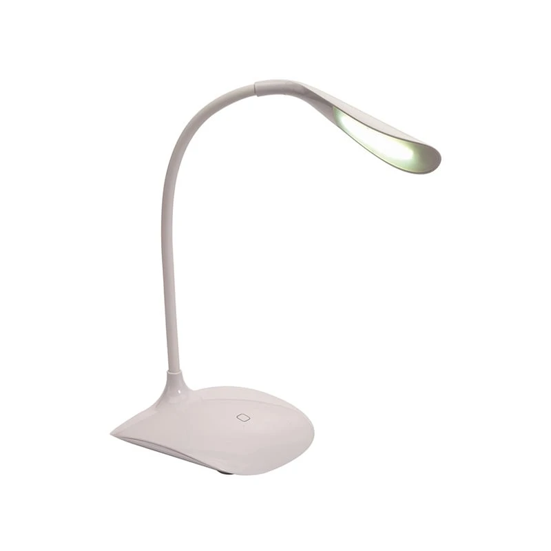 Настолна лампа Swan. Лампата има гъвкаво подвижно рамо с 14 светодиода. С функция на затъмняване и 3 нива на яркост, с чувствителност на допир при включване и изключване. Лампата се захранва с USB кабел (с дължина 120 cm). Многостранна употреба благодарение на вградена батерия, консумация на енергия до 1.5 watt. Основата е с гумени крачета против плъзгане. Опакована в подаръчна кутия.
