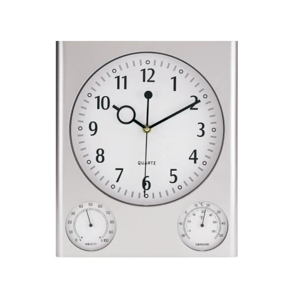 Правоъгълен стенен часовник Saturn. Включва влагомер и термометър.