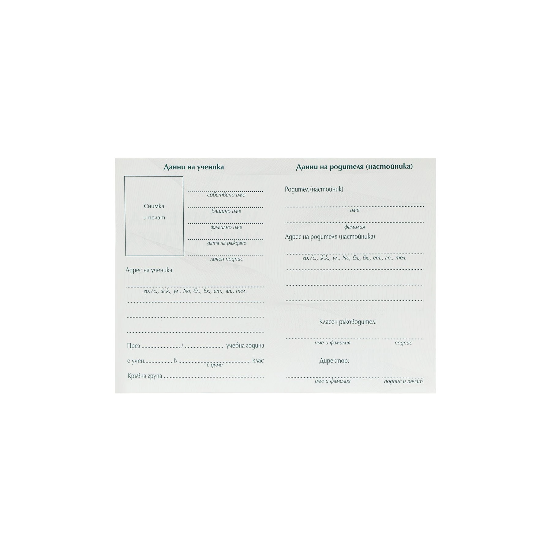 - данни за ученика;