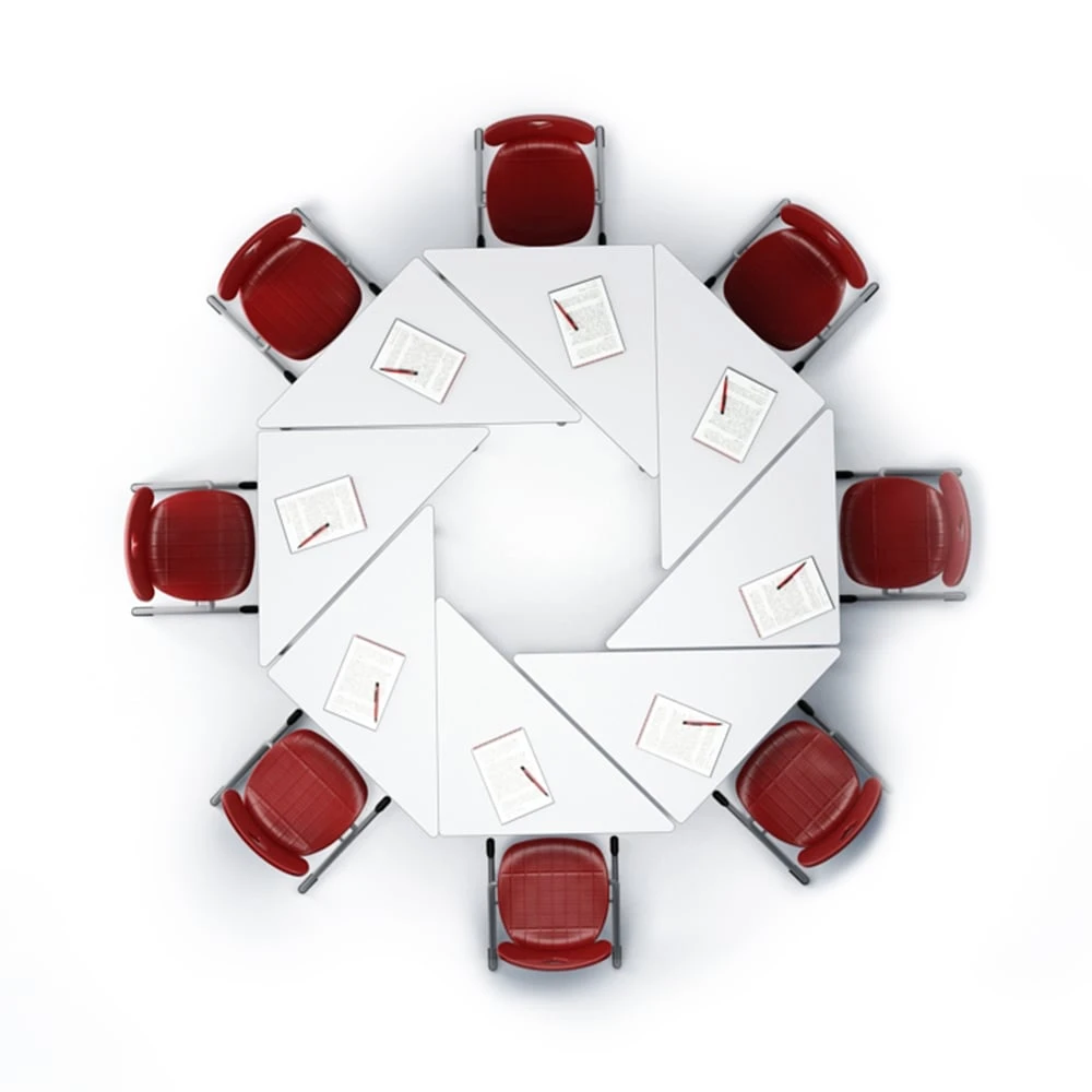 Ученическа маса RFG Trapez 45, над VIII клас, 650 х 1250 х 750 mm, модулна, триъгълна, MDF бял плот, сиви метални крака