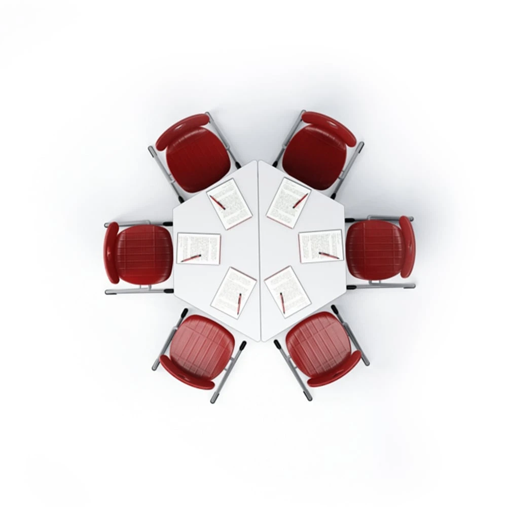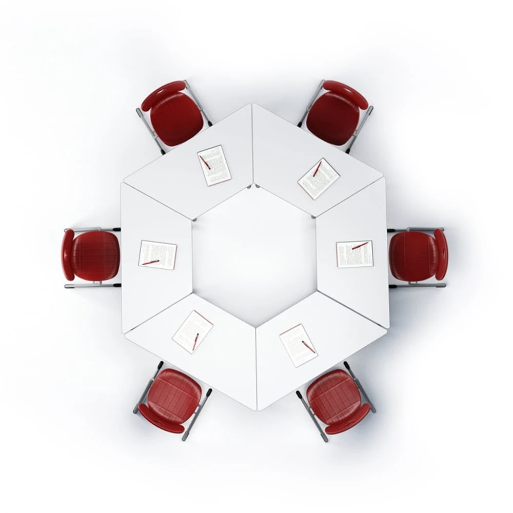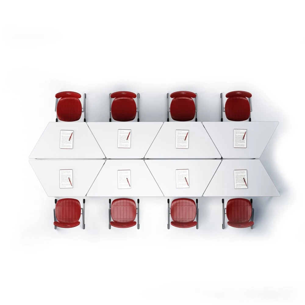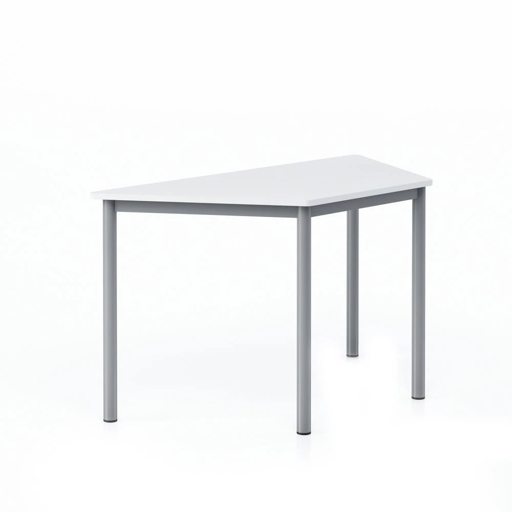 Ученическа маса RFG Trapez, модулна, трапецовидна, над VIII клас, 1250 х 600 х 750 mm, бял MDF плот със заоблени ъгли, сиви метални крака