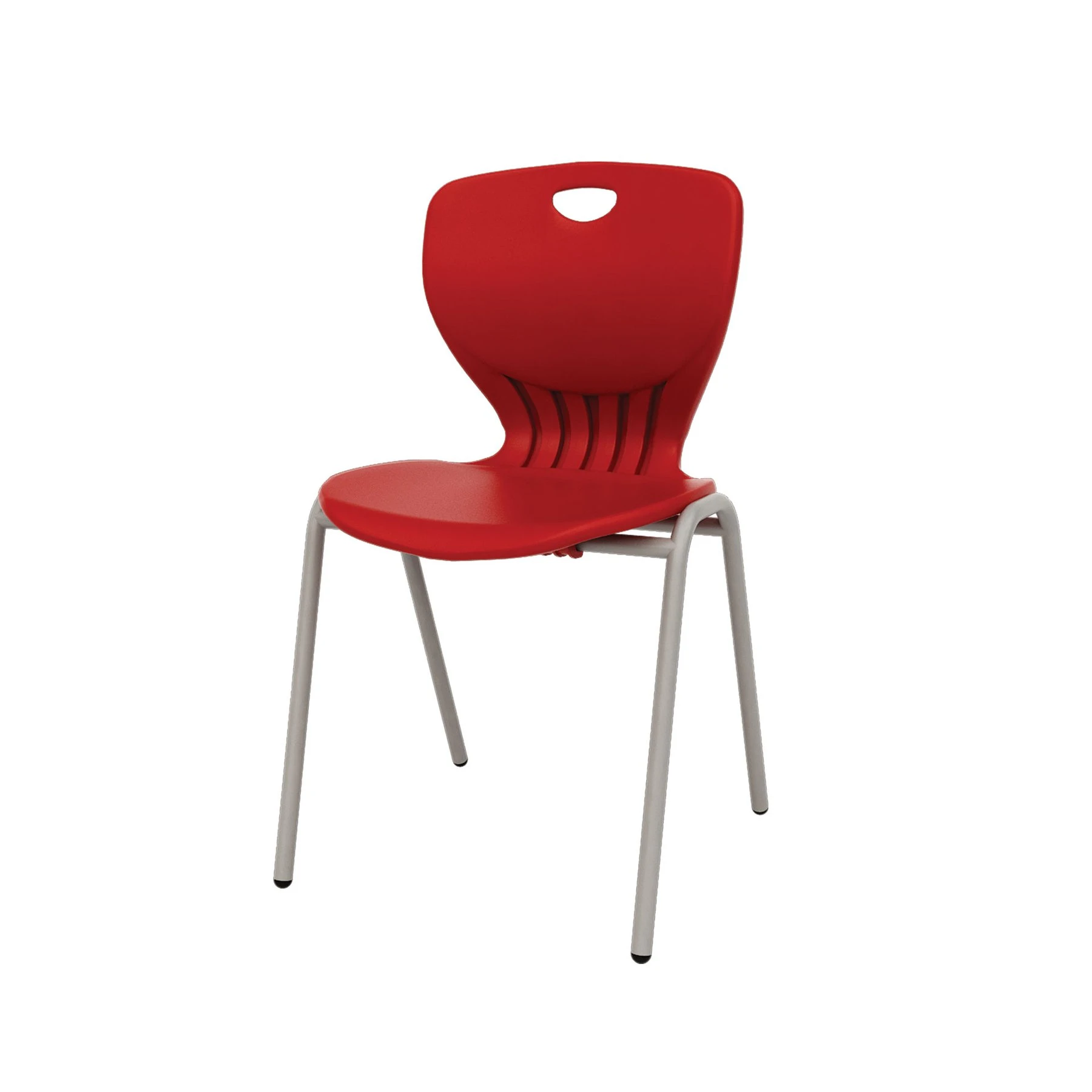 A-рамката позволява удобно захващане и лесно подреждане за съхранение. Здравата повърхност на седалката издържа на драскотини и се почиства лесно. Протекторите на краката осигуряват стабилност и предпазват подовете от абразия. Удобен захват посредством отвор в облегалката на седалката прави носенето наистина лесно.