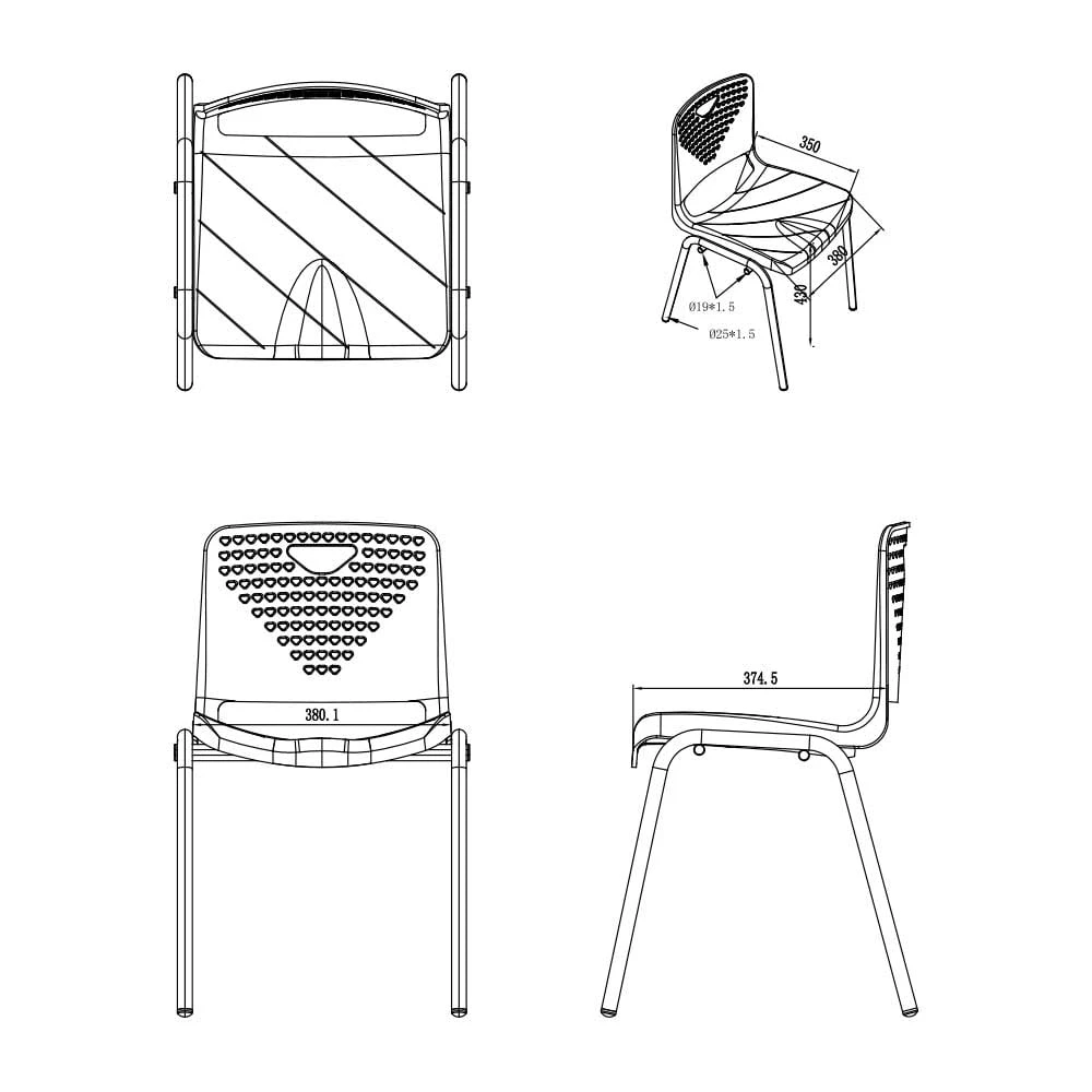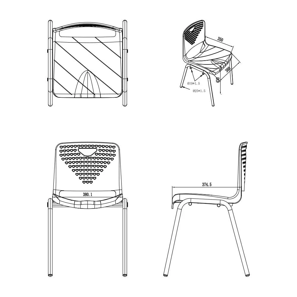 Седалка и облегалка изработени от устойчив антиоксидантен полипропилен с UV защита.