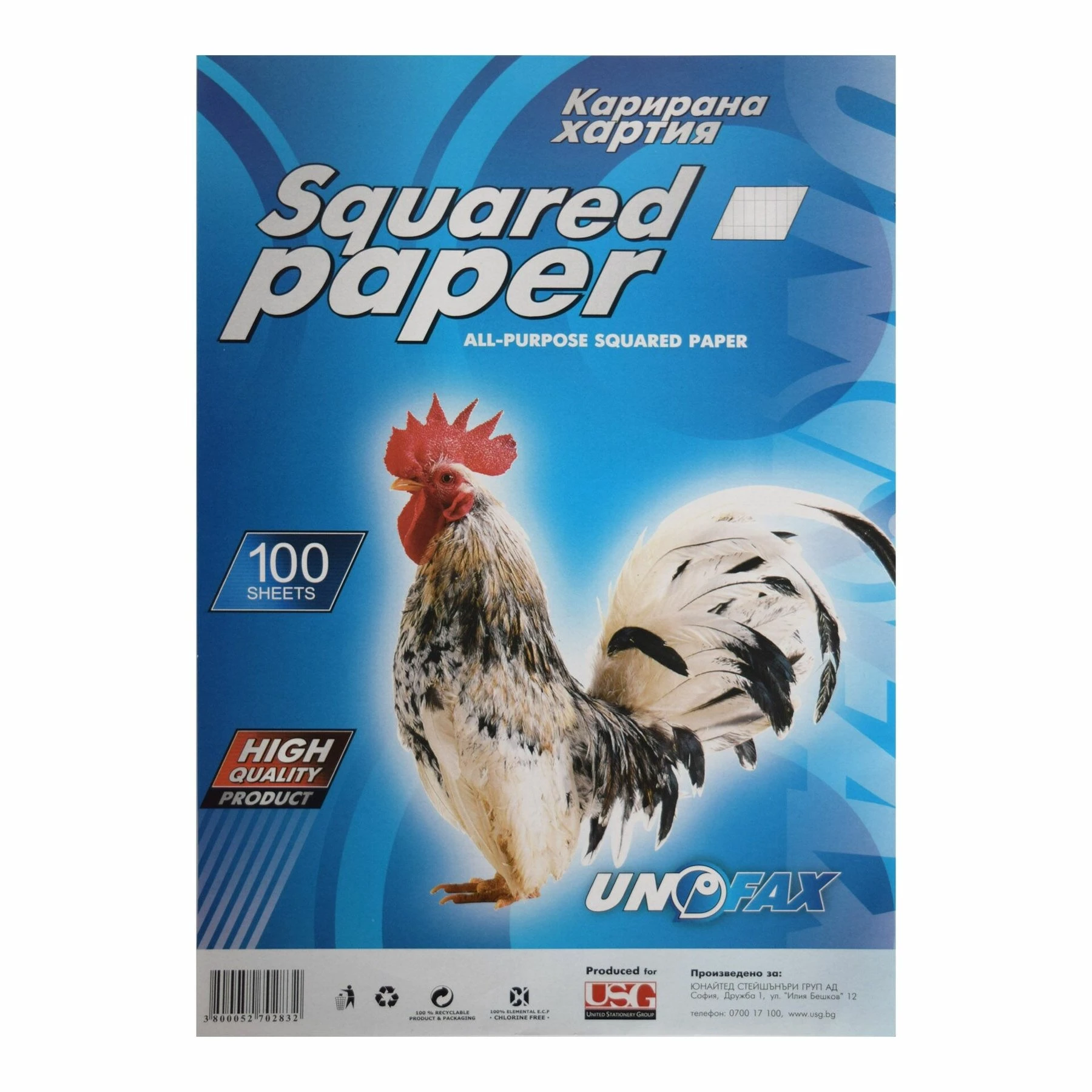 Unofax Карирана хартия, A4, вестникарска, 100 листа