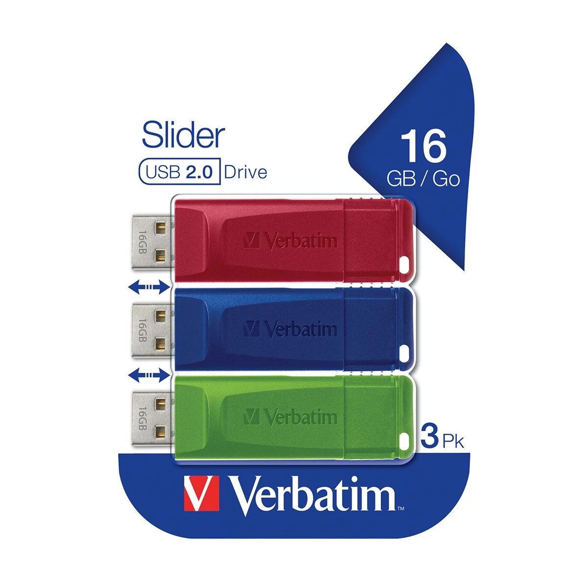 USB флаш памет Verbatim Slider, USB 2.0, 16GB, 3 броя