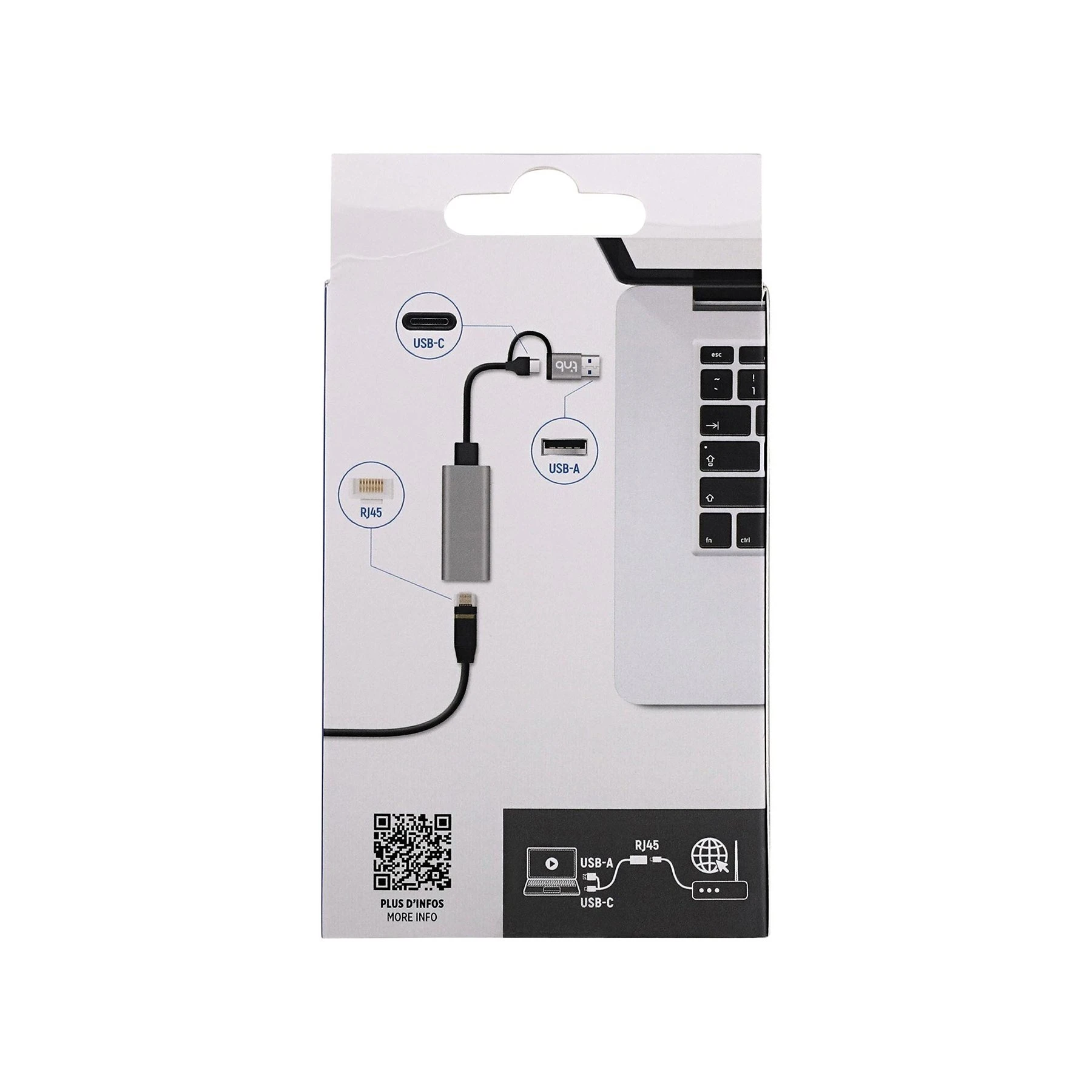 Този адаптер Ви позволява да се свържете към кабелната мрежа с помощта на USB-C или USB-A порт.