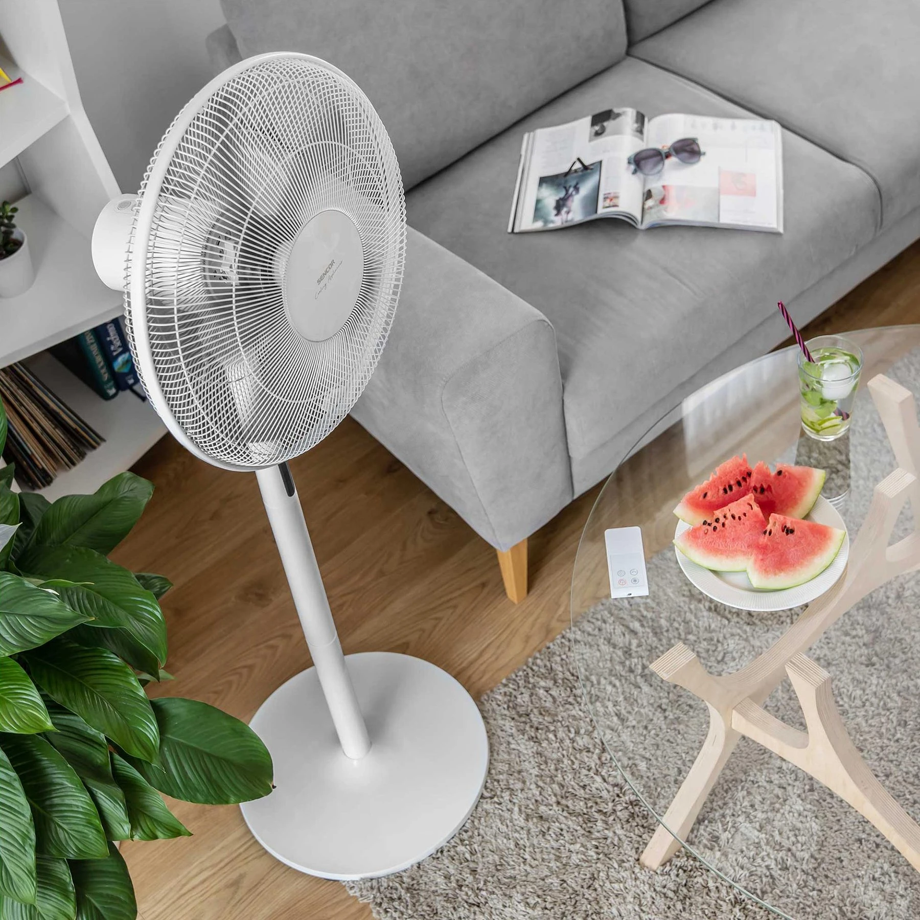 Със своя диаметър от 40 cm на перката, широка осцилация от 80° и мощност от 48 W, вентилаторът осигурява мощен и равномерен въздушен поток в помещението. Перфектен избор за хора, които ценят както ефективността, така и модерното удобство.